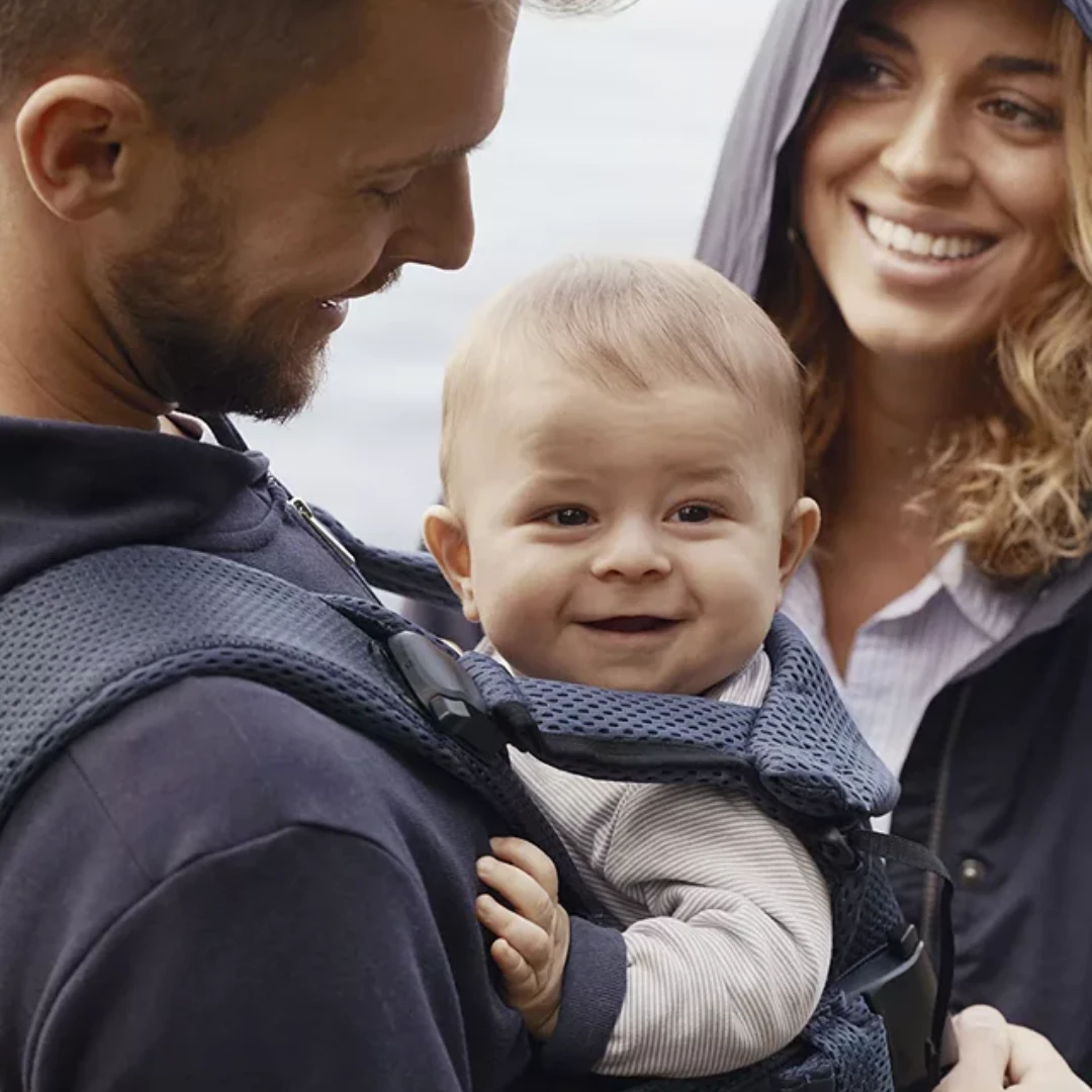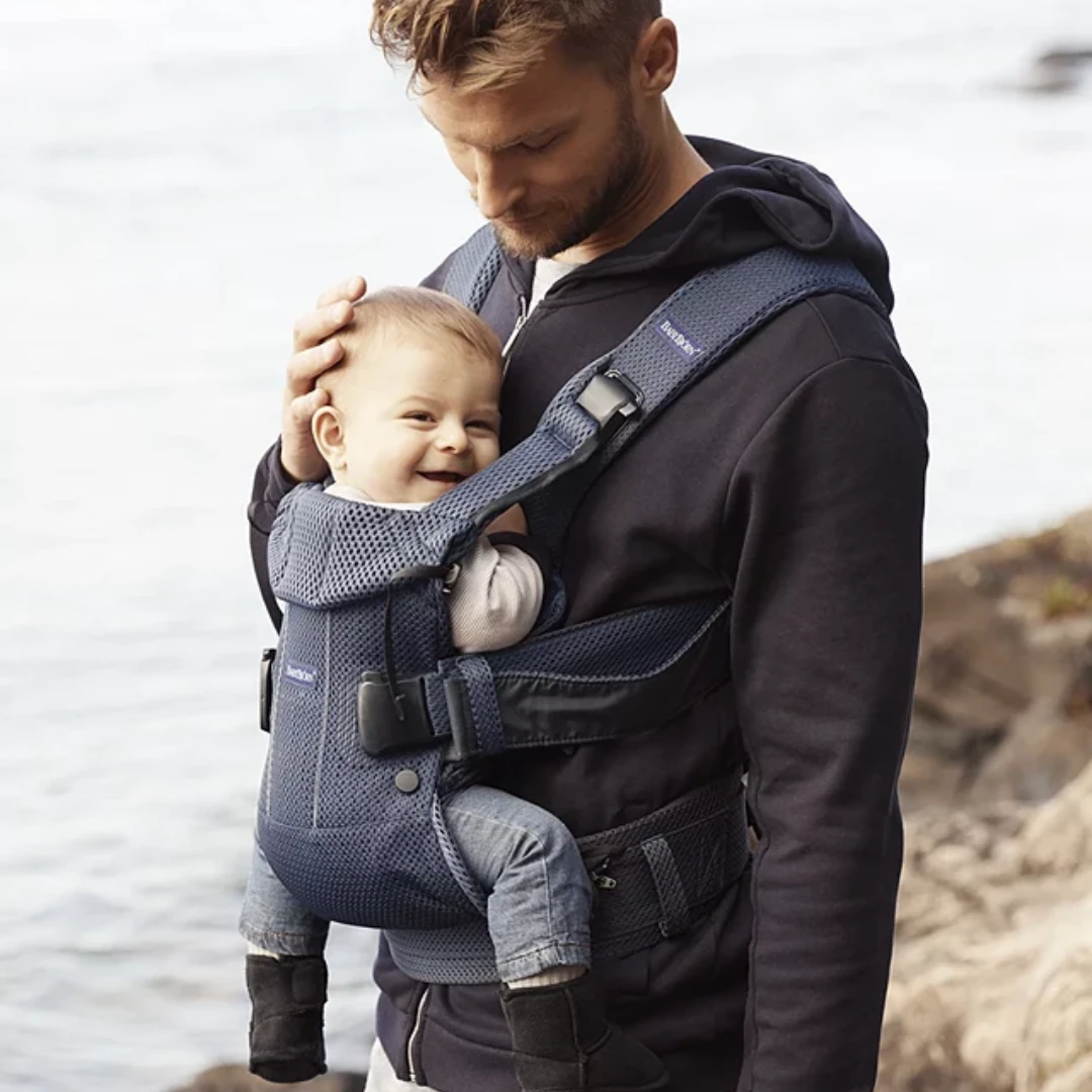 The BabyBjörn Baby Carrier One Air Mesh 3D in Navy Blue ensures long-lasting carrying while providing maximum comfort for you and your little one. Its stylish upgraded design, pressure-relieving waist belt and generously padded shoulder straps allow you to carry comfortably for extended periods of time, making it easy to get out and about with your baby safe and close to you at all times.