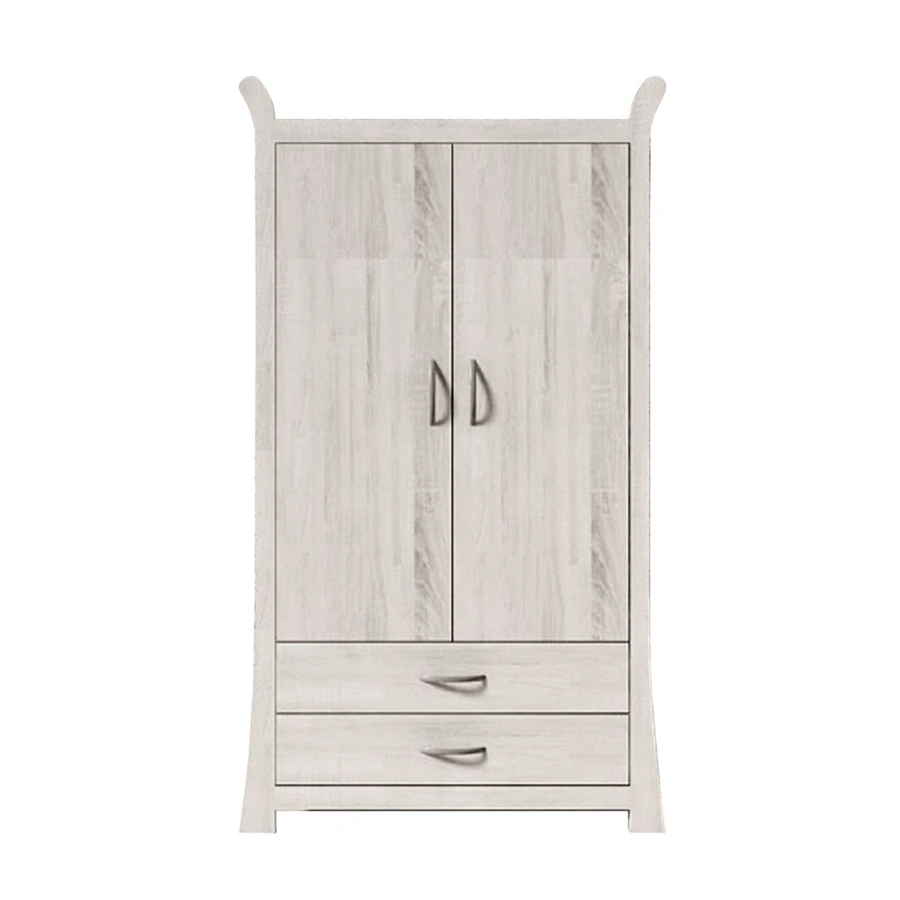 The Babystyle Noble Wardrobe in Soft Oak offers a spacious interior with hanging rail and integrated shelving for plenty of your little one’s clothes. Featuring two lower soft-close drawers, the wardrobe is majestically finished with satin chrome handles and double doors.