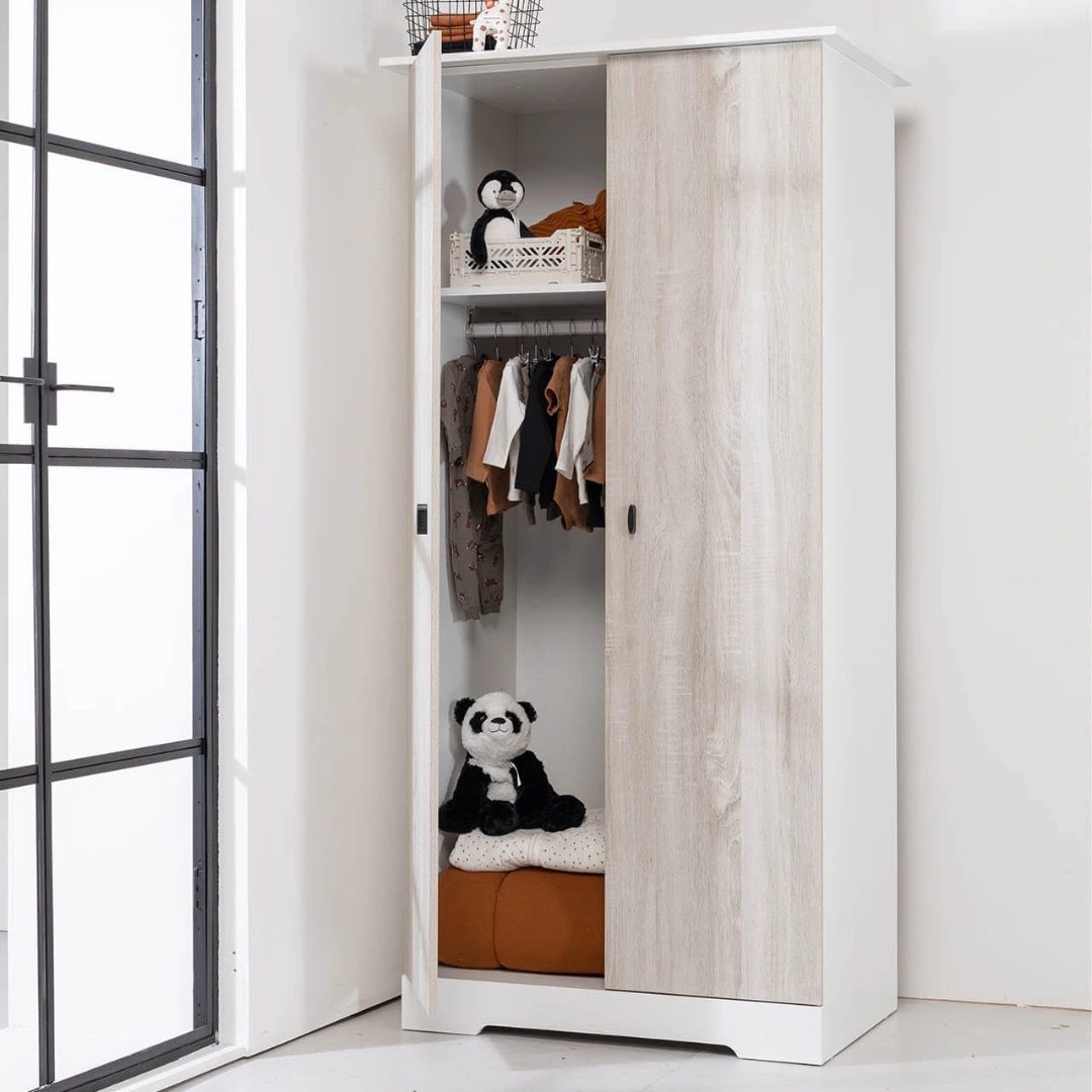 The New Verona Wardrobe in White/Ash is part of Babystyles Charnwood collection. Featuring full length doors, with internal shelf and hanging rail, this modern design is stylish yet practical.
