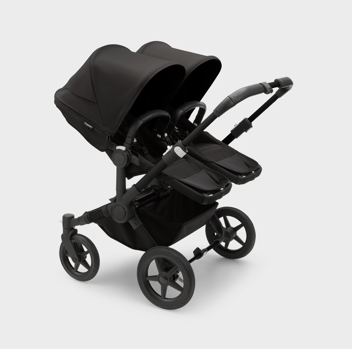 The NEW Bugaboo Donkey 5 Duo Pushchair & Carrycot in Midnight Black is designed for discovery! This double side-by-side stroller is smaller than you think and keeps siblings closer than ever, which promotes bonding and shared experiences.
