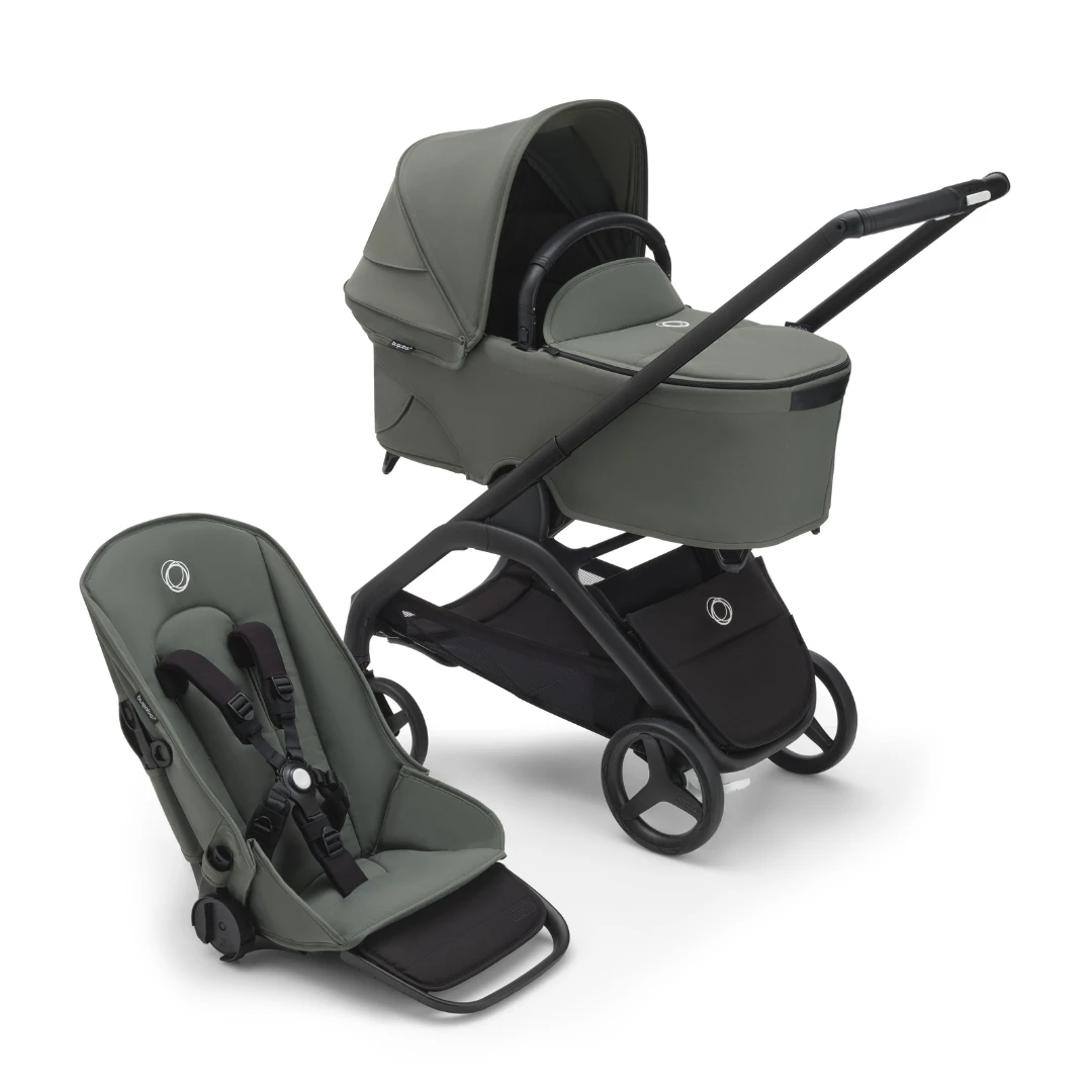 Say hello to Bugaboo’s most innovative pushchair yet, the Bugaboo Dragonfly Ultimate Bundle with Maxi-Cosi Cabriofix i-Size in Forest Green on a Black chassis. Featuring patented technology, the unique design folds compactly into a self-stand position, with either the seat or carrycot attached, no matter the configuration, using just one hand. The innovation is a game-changer for city dwelling families, where space is a luxury and compact convenience, that doesn’t compromise on comfort, is a necessity.