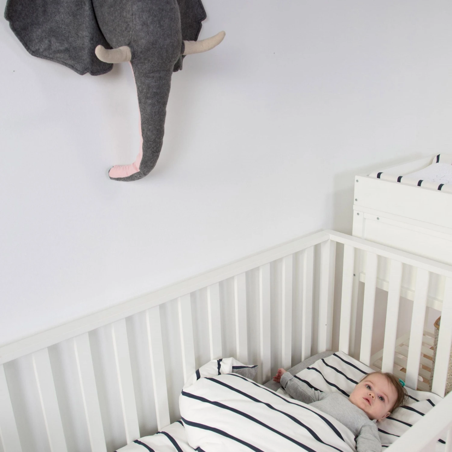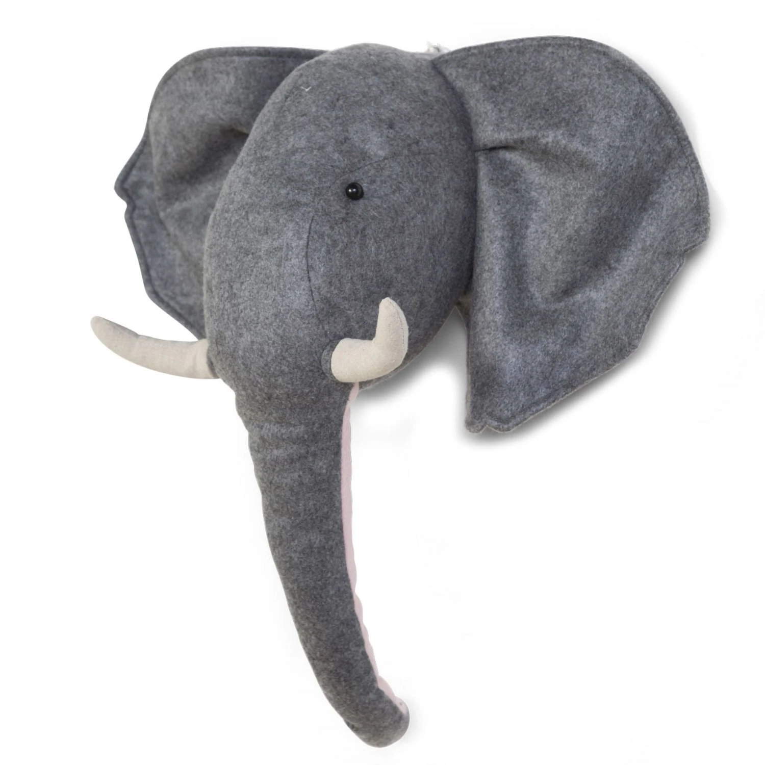 Whether you have one of these or a complete zoo, the Childhome Animal Head Felt Wall Decoration in the Elephant design is sure to be loved by your child and makes a great nursery focal point. The Elephant has a hardback with a loop for hanging and a soft filling. The light grey animal head with a large trunk, tusks and floppy ears is a real eye-catcher!!