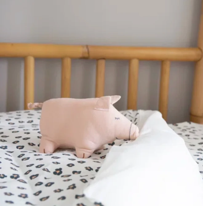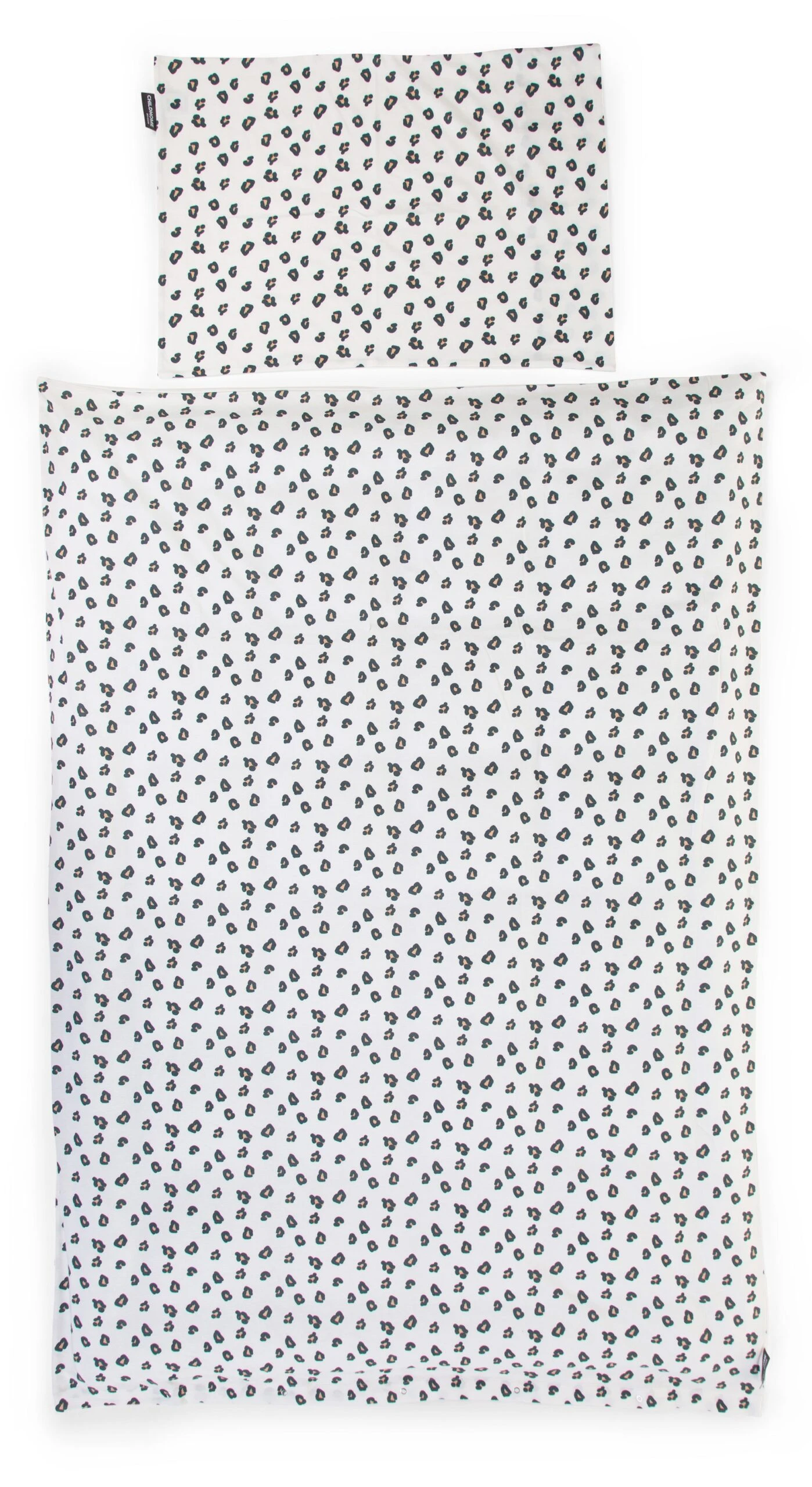 A soft duvet cover (100x140cm) and a pillowcase (40x60cm) made from high-quality jersey cotton with a trendy leopard print from Childhome. Your child will sleep carefree in this ultra-soft sleep textile. Suitable for beds of 60 x 120 cm and 70 x 140 cm. The duvet cover has a large opening at the bottom over the entire width (100 cm) to insert the down. You can close the down cover with 5 press studs.