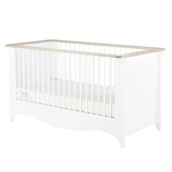 The Clara full-size cot bed is suitable from birth to about 5 years. Designed with 3 mattress positions, the Clara cot bed easily converts into a modern and stylish toddler bed for years of enjoyment.