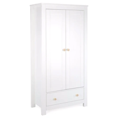 The Clara 2 door double wardrobe is designed to successfully organise your nursery, with 2 removable hanging rails to convert into a full-size wardrobe, a deep storage drawer and a handy shelving space. Classic styling to transform a modern nursery.