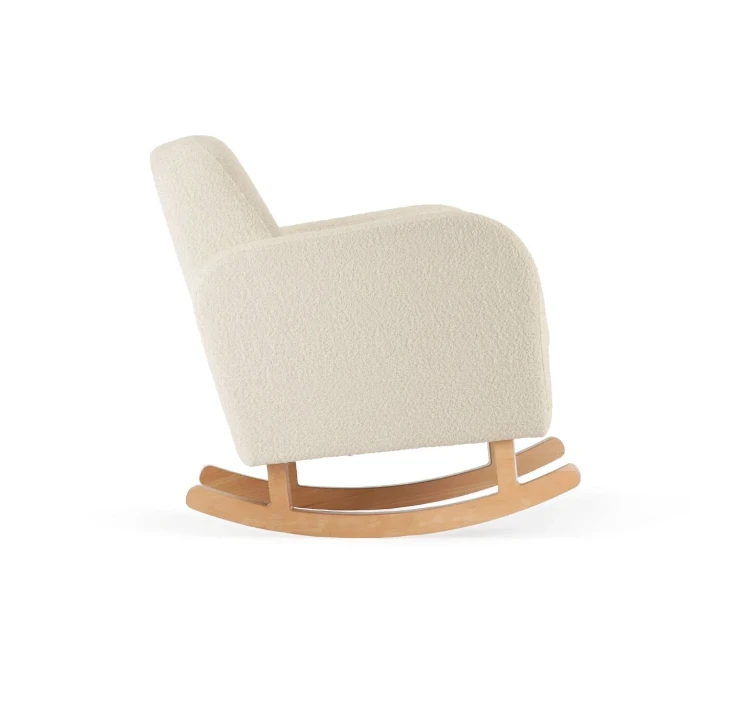 The Cuddle Co Etta Off White Boucle Nursery Chair offers a contemporary take on the classic nursing chair design. Its on-trend, off- white boucle detailing makes it a chic addition to any baby’s nursery.But it’s not just about looks – comfort is key when it comes to nursing chairs. With deep padding, wide armrests, and a soft surface, this boucle rocking chair is designed for ultimate relaxation while nursing, rocking, or singing your little one to sleep. Plus, the gentle rocking motion can help soothe even the fussiest baby.