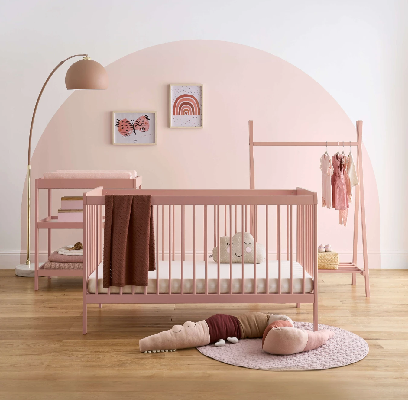 The CuddleCo Nola Soft Blush 3 Piece Nursery Furniture Set has a contemporary style that combines a minimal design with a bold splash of colour to create a modern nursery set. Made with sustainably sourced pine wood, Nola uses the power of colour to turn tiny rooms into truly modern nurseries.