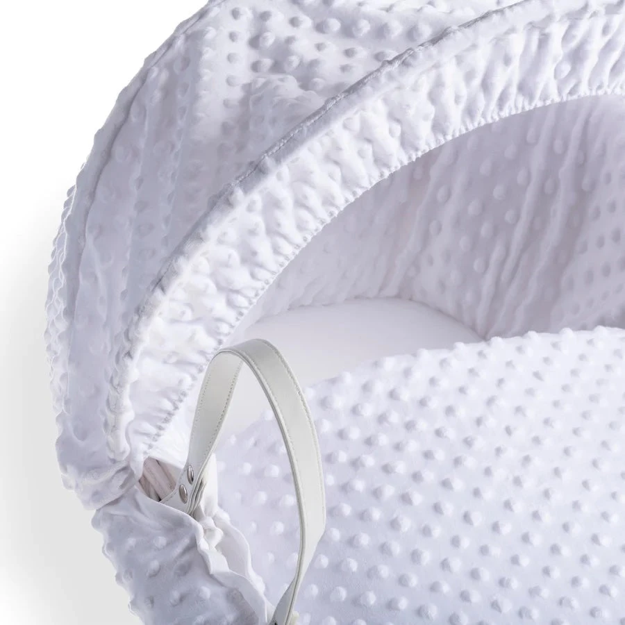 This stylish Cuddles Collection Moses Basket in White Wicker with White Dimple fabric is both crisp and fresh and provides the perfect place to house your new baby.
