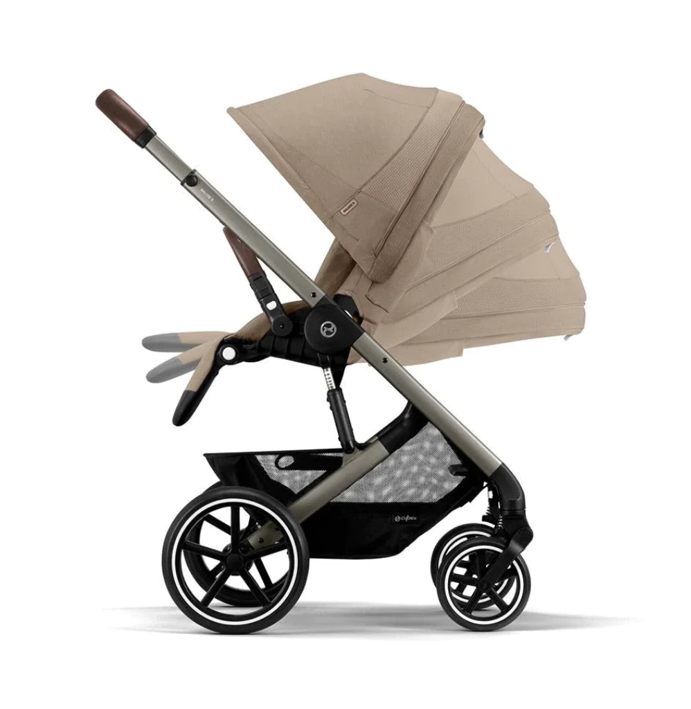 The 2023 Cybex Balios S Lux Pushchair in Almond Beige on a Taupe chassis, is just the stroller you’ve been looking for to take on all aspects of city life with ease and with a sophisticated designer touch. The advanced suspension system gives parents peace of mind that their baby is perfectly comfortable as they hit the streets. It takes one pull of the unique harness to guarantee that your baby is snugly secured in safety.