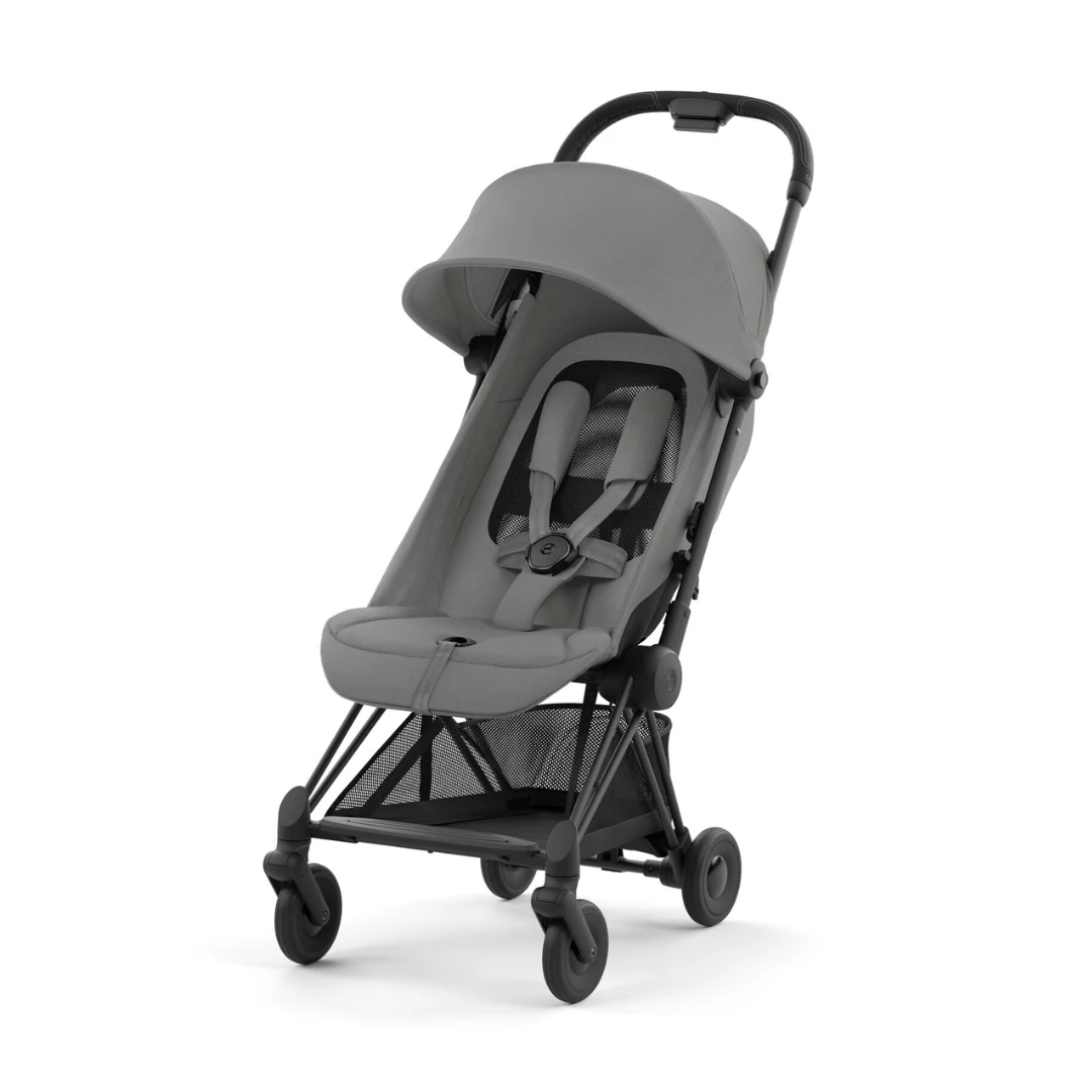 Created for the most fashionable parents, the Cybex Coya Platinum Stroller in Mirage Grey on Matt Black, Cybex’s first ultra-compact buggy combining iconic design with first-class functionality. Folds in seconds, lightweight, and with a hand luggage compatible design ‒ it’s got to be your travel companion of choice.