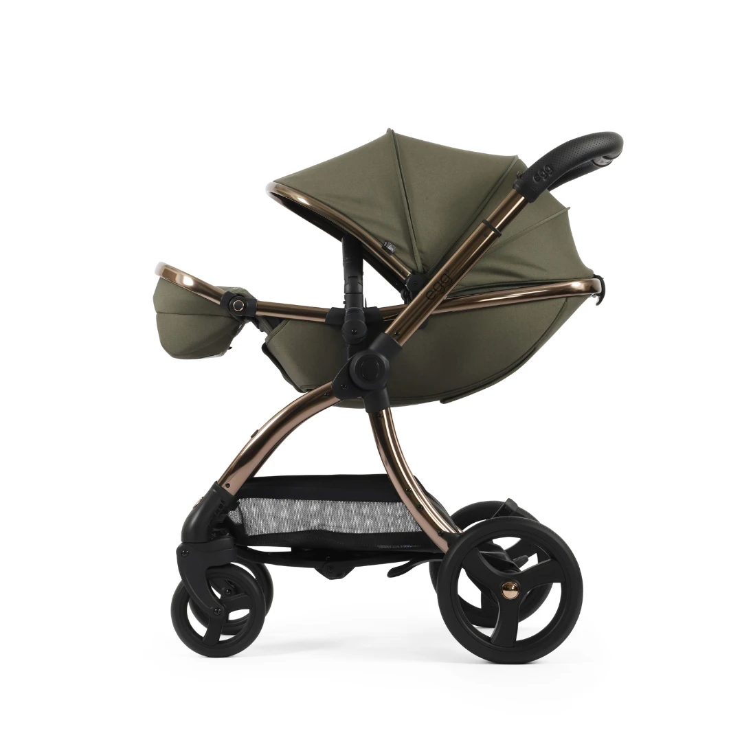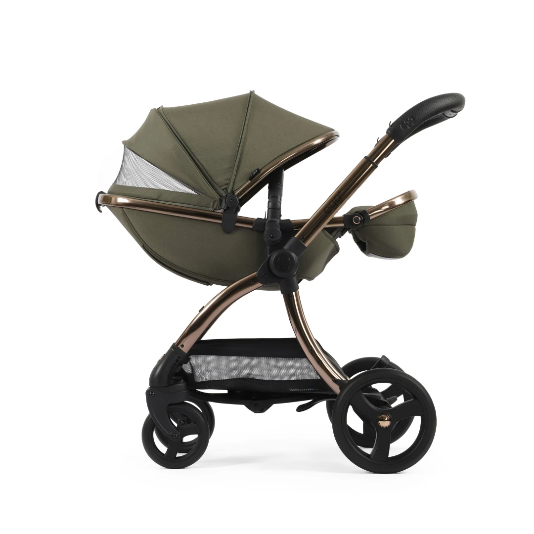 The NEW Egg3 Stroller Luxury Travel System with Egg i-Size Car Seat in Hunter Green features an enhanced, extendable canopy, perfect for day-time naps or so you can fully protect your little one from the sun with its 50+ UPF fabrics. The canopy also incorporates a ventilation window for optimal airflow, which can be seamlessly closed using magnets sewn into the fabric.