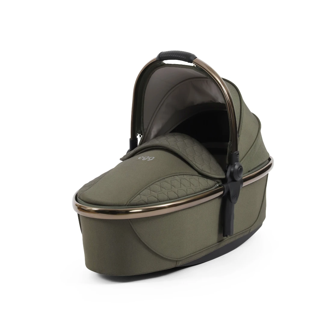 The Egg3 Carrycot in Hunter Green creates a perfect haven for the first six months of your child’s life, providing a luxurious and protective environment that ensures your baby’s safety in a lie-flat position. Featuring a new sustainable Sorona® mattress, which is washable, breathable and chemical free. The new Egg3 Carrycot also includes and extra-large hood with ventilation window and rocking rails on its base, so you can soothe your baby to sleep.