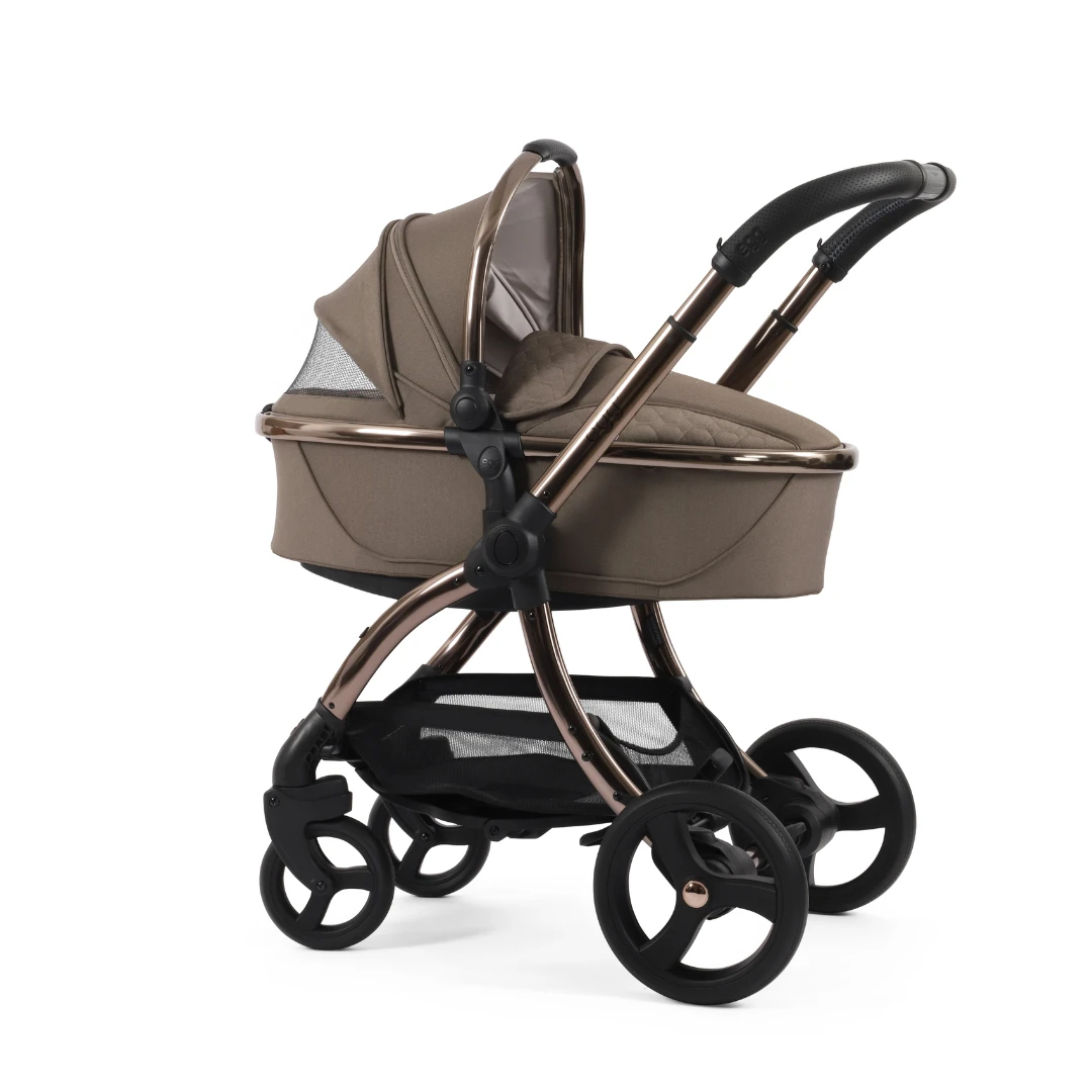 The Egg3 Carrycot in Mink creates a perfect haven for the first six months of your child’s life, providing a luxurious and protective environment that ensures your baby’s safety in a lie-flat position. Featuring a new sustainable Sorona® mattress, which is washable, breathable and chemical free. The new Egg3 Carrycot also includes and extra-large hood with ventilation window and rocking rails on its base, so you can soothe your baby to sleep.