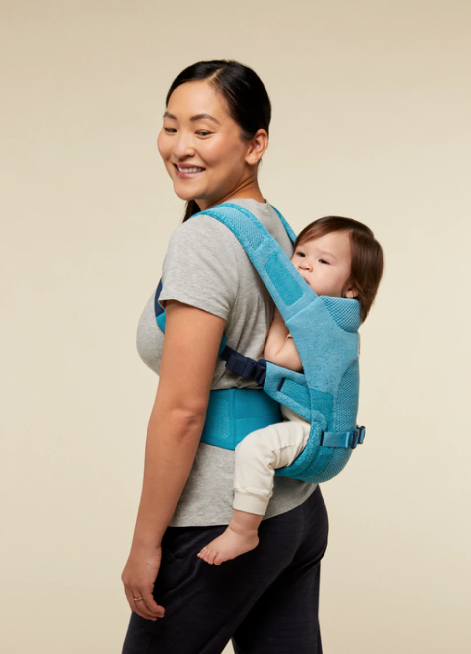 The Aerloom Baby Carrier in Aquamarine by Ergobaby is the first carrier of its kind, made from an innovative