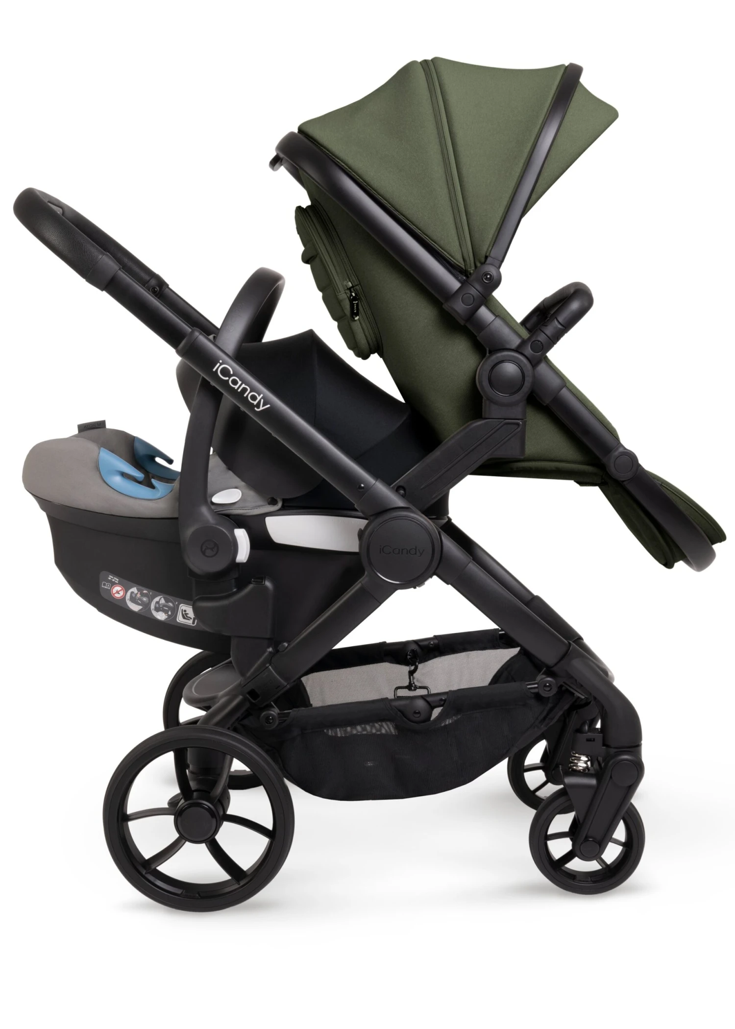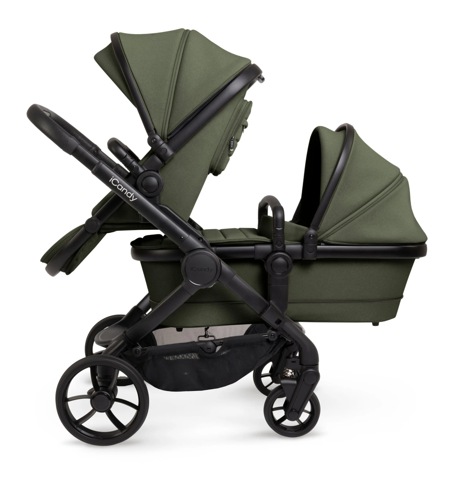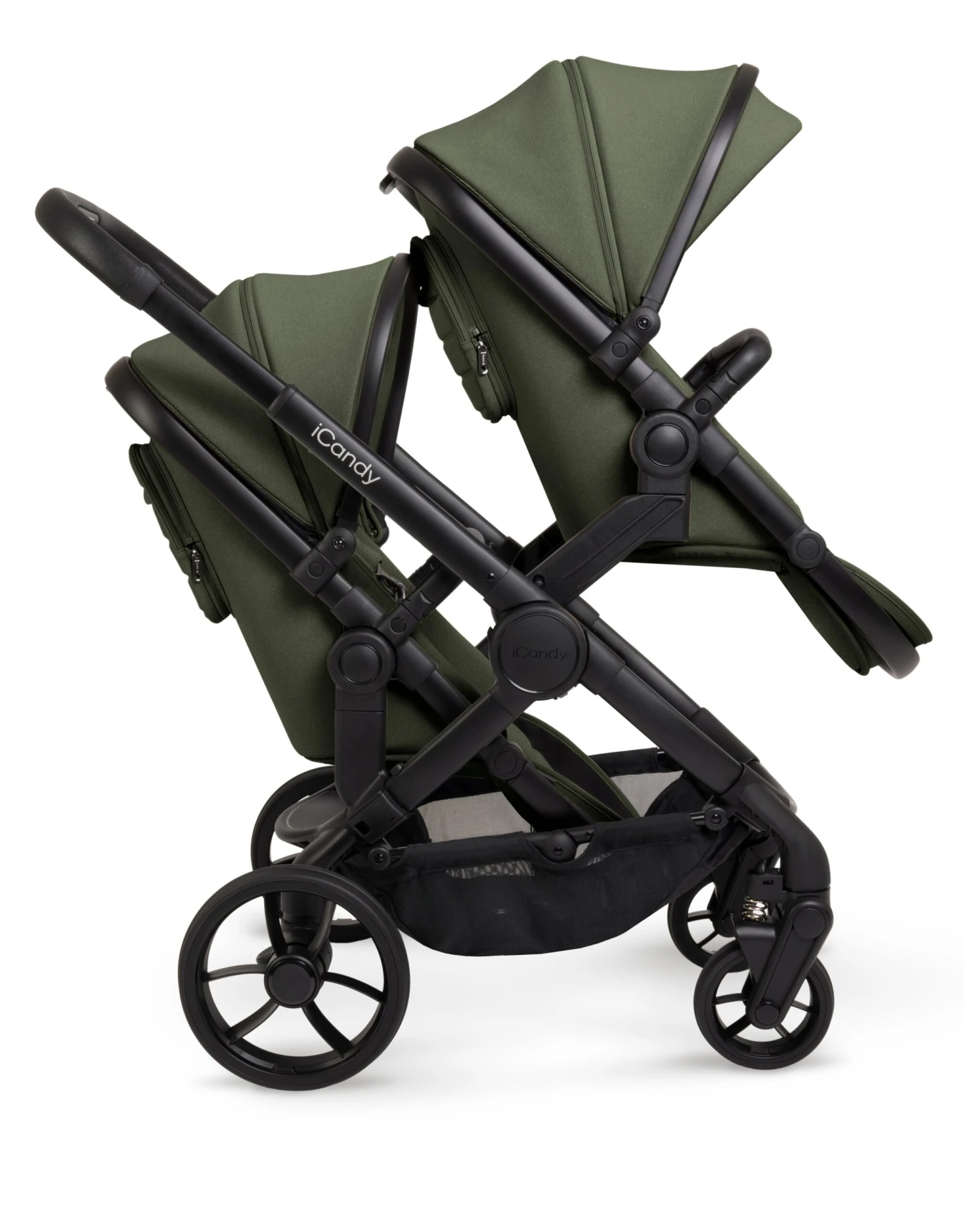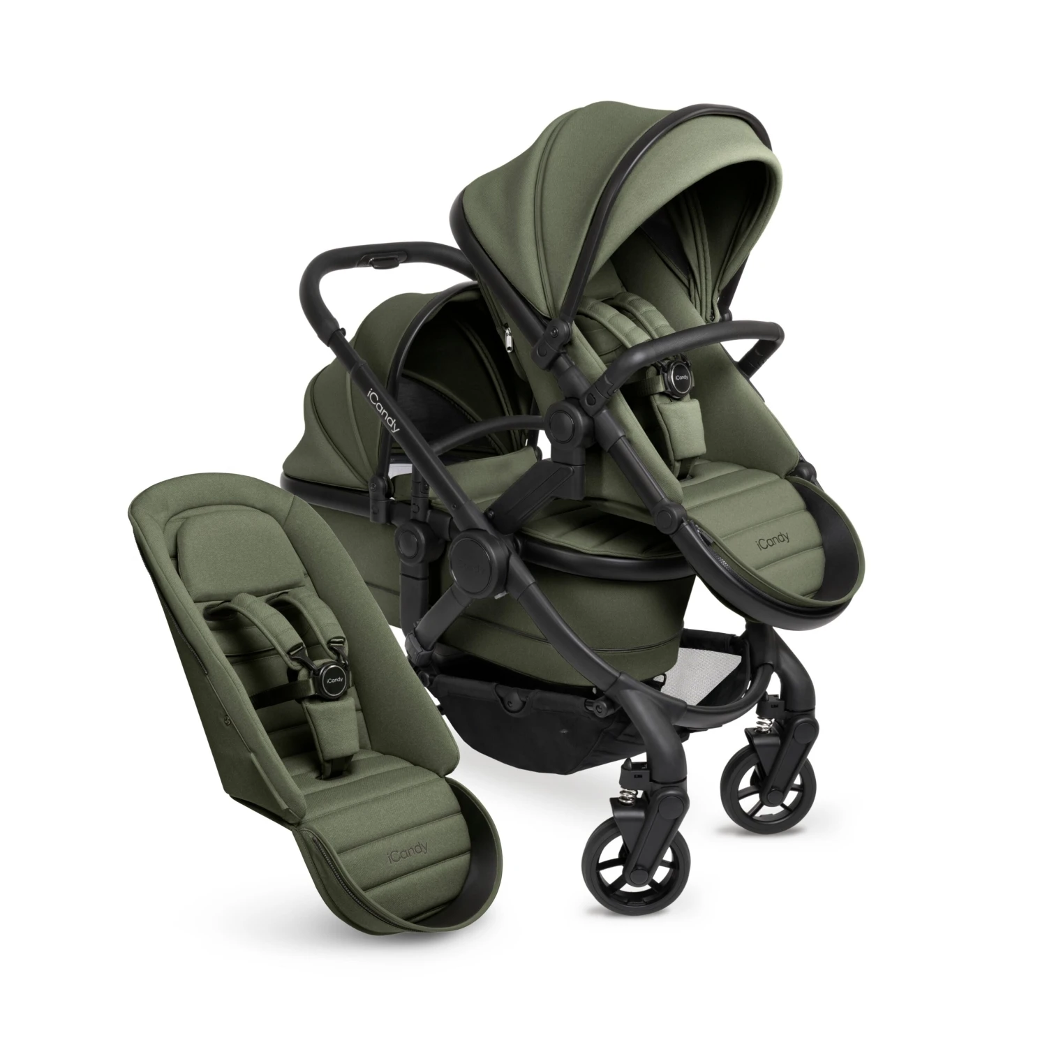 As your family grows so can your pushchair with the NEWEST iCandy Double Peach 7 family member in Ivy on a Black Chassis the neutral and sophisticated shade.