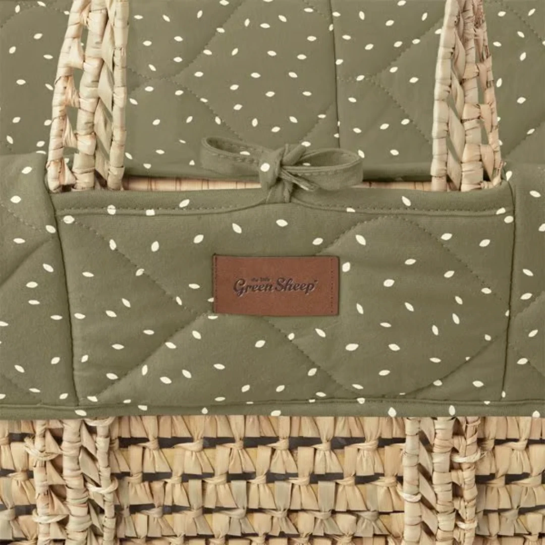Create the most natural sleeping environment from day one with this Little Green Sheep Quilted Moses Basket in Juniper Rice Print, part of our With Love collection. Complete with a luxurious Little Green Sheep mattress.