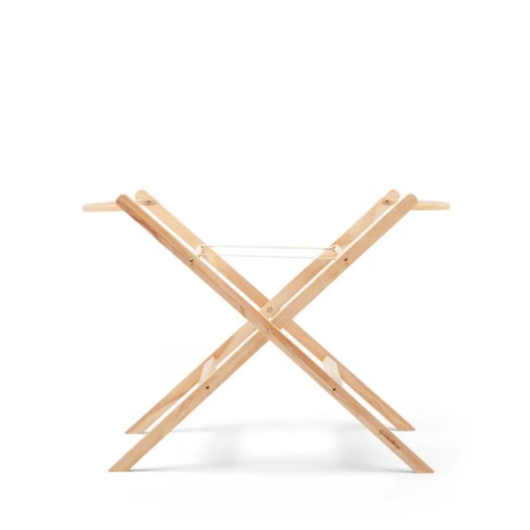 Natural Moses Basket, Quilted Liner, Little Green Sheep Mattress, Moses Basket Stand