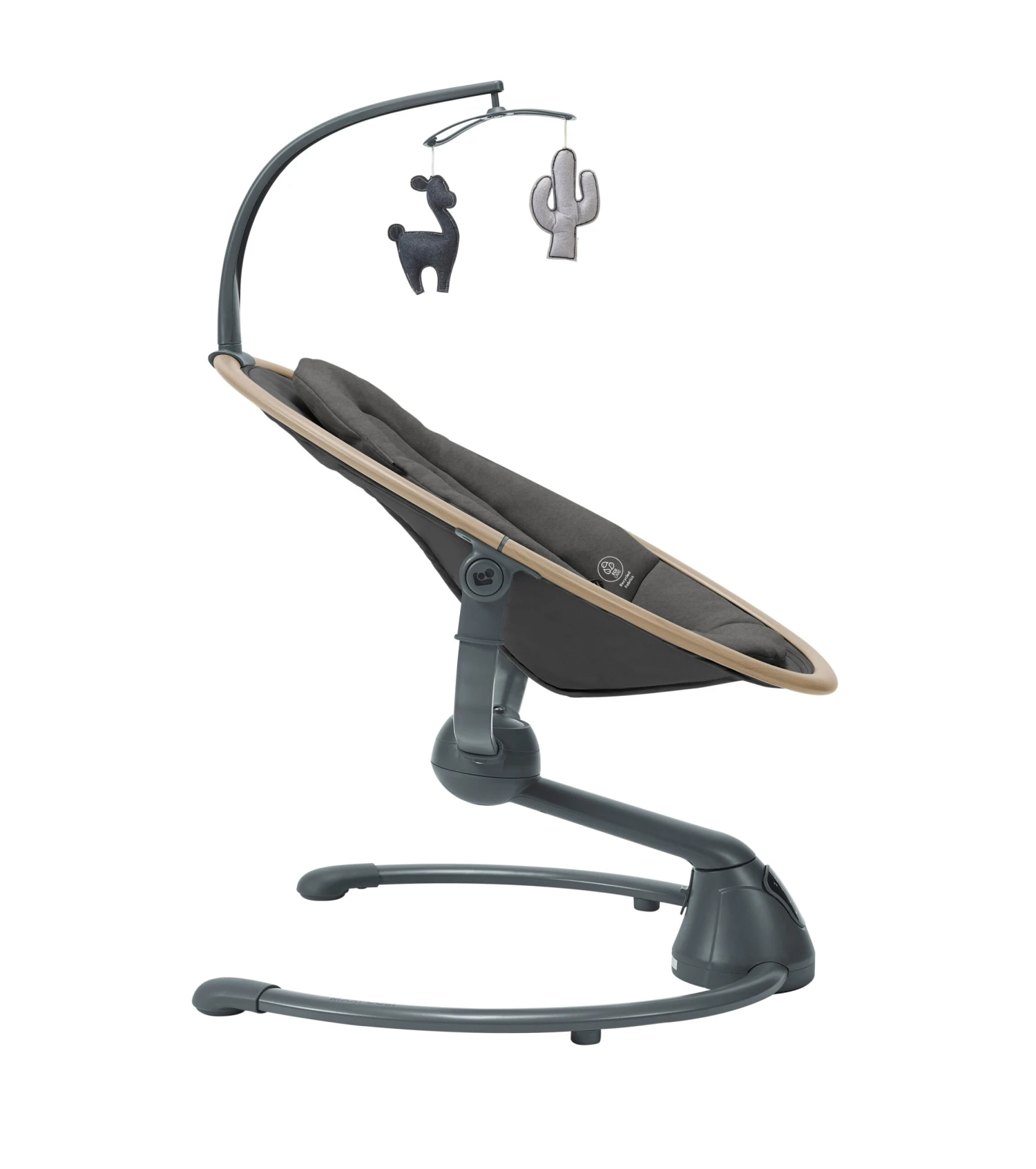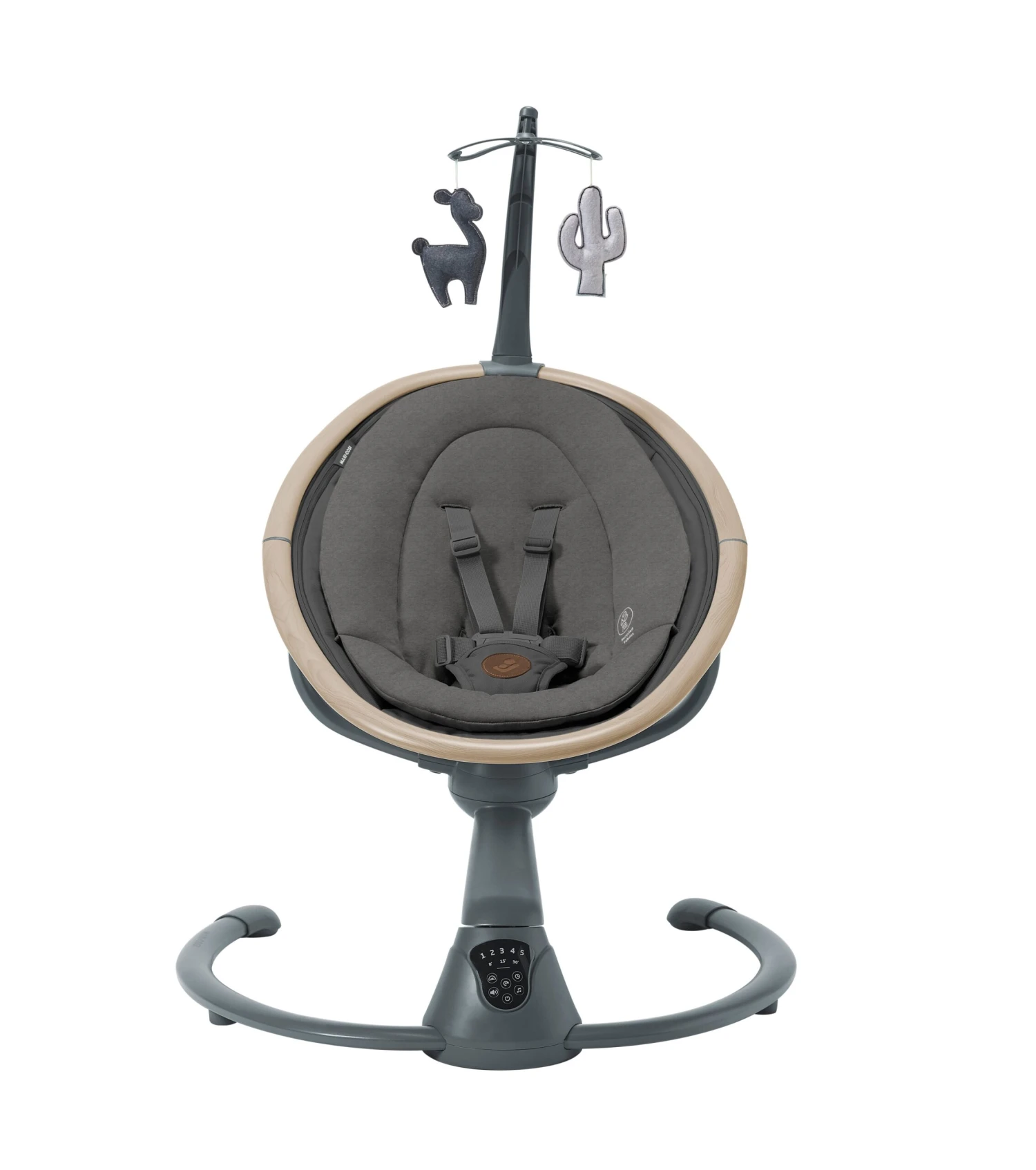 Meet the Maxi Cosi Cassia in Beyond Graphite a stylish electric swing designed to give parents a helping hand with their newborn when they need both of theirs free. Usable from birth up to 6 months (approx. 9kg), Cassia detects when your little one gets fussy and will instinctively start swaying to soothe them. Cocooned in the soft, padded inlay, your baby will be comforted by the 12 melodies and nature sounds that Cassia plays. Wherever you are in the room, the 360⁰ rotation ensures you always have eye-contact with your little one.