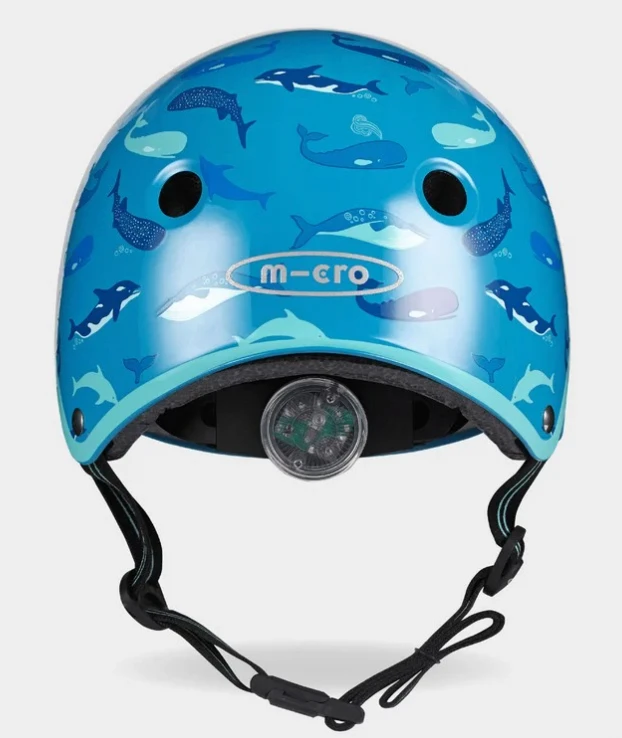The Stylish Helmet features various sea life such as whales and dolphins all over.