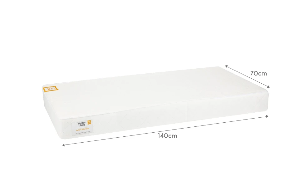 - This Mother&Baby Cot Bed mattress measures 140 x 70 x 12cm (L x W x D)