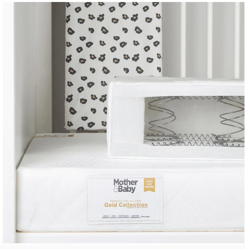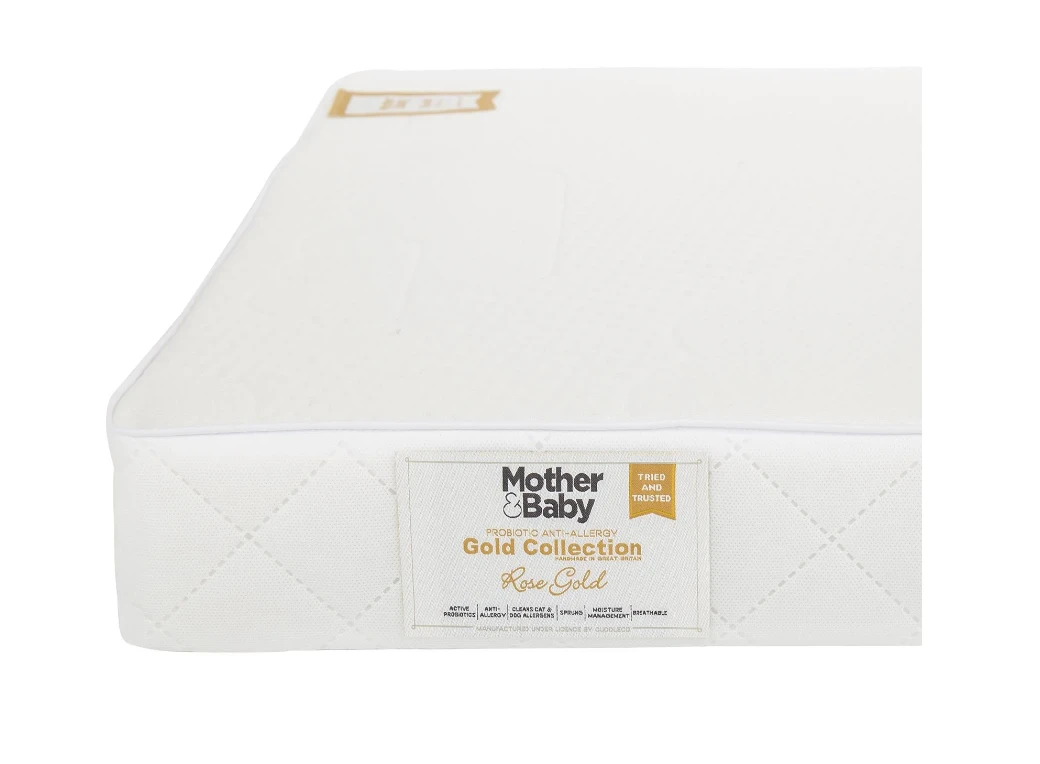 The Mother&Baby Gold Collection baby and toddler mattresses provide a cleaner, fresher, healthier sleep environment for your little one, and this Rose Gold Anti-Allergy Sprung Cot Mattress is no exception. Crafted using the perfect combination of nature’s finest TENCEL™ fibres and Purotex® anti-allergy protection to guarantee a fresher and cleaner sleep for your baby night after night.