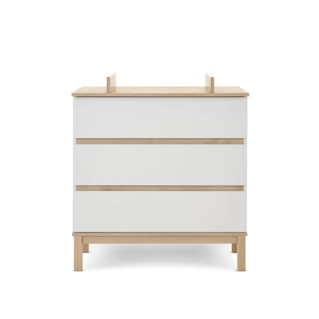 With its clean lines, two-tone colourway and chic no-handle design there is no compromise on style and with the three added large drawers and removable changing top it is practical too.complimenting any room of the house for years to come.