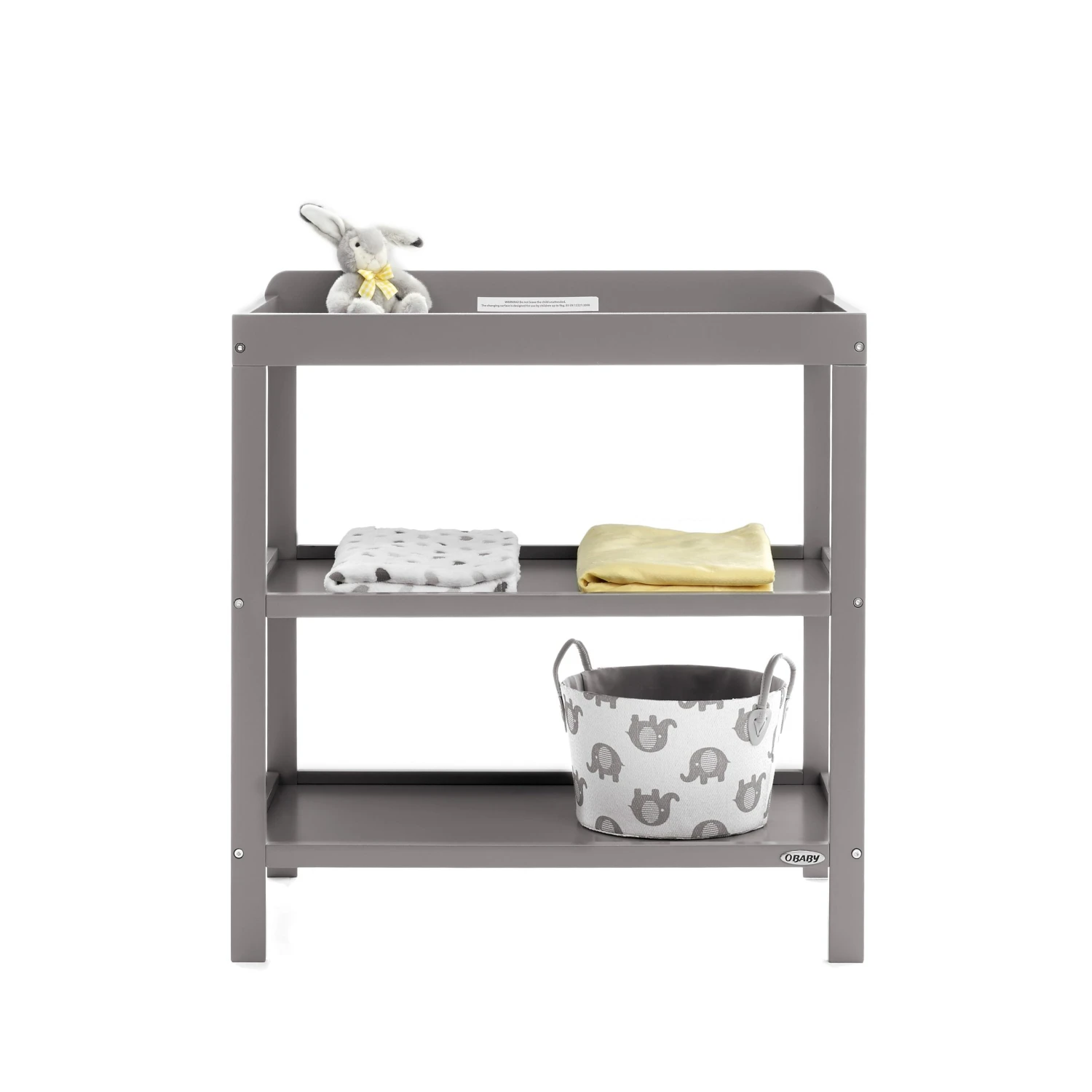 * Two large open shelf spaces for storing all of baby’s changing essentials