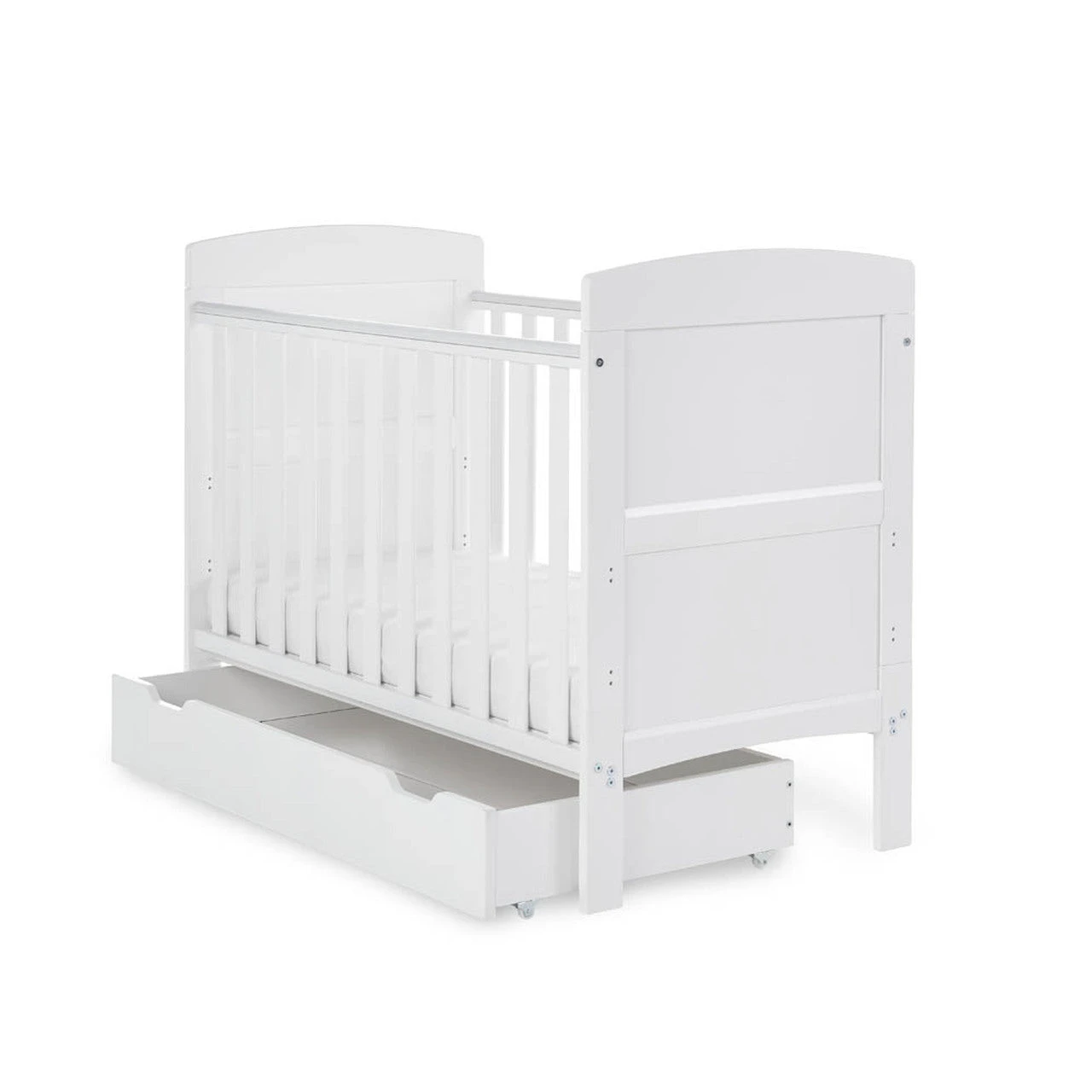 The included Obaby cot bed under drawer features a whopping 86L capacity, creating a practical, space saving, storage solution for keeping your little one’s things neat and tidy. It fits neatly under the Grace Inspire cot bed and the durable wheels offer quick and easy access to stored items on any surface.