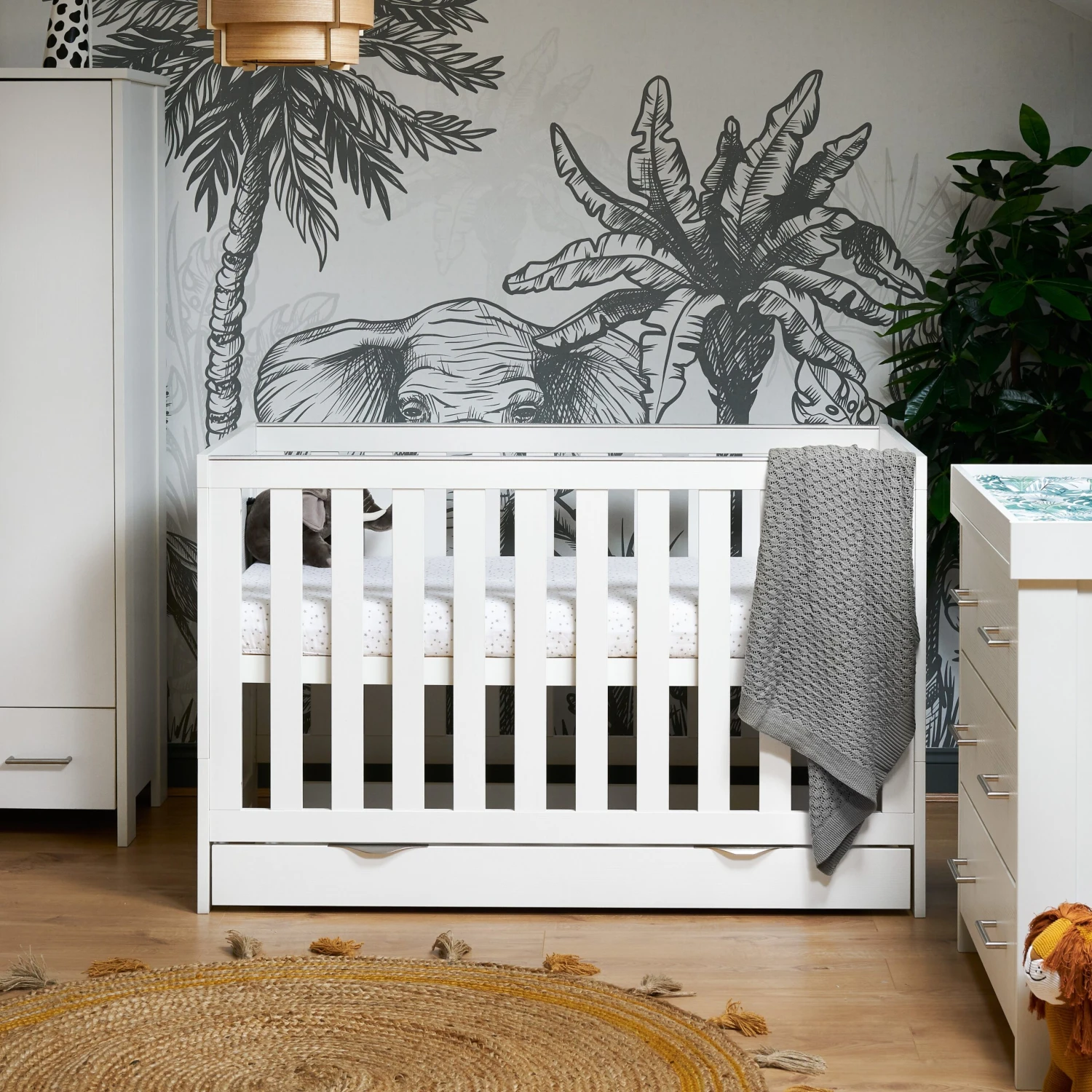 When your little one is standing confidently, the Nika can be easily transformed into a stylish toddler bed that still offers the familiarity they are used to and helps them to transition in an often-daunting time. Once transformed the toddler bed can be used until they are approximately four years old. Requires an Obaby 140 x 70cm mattress.