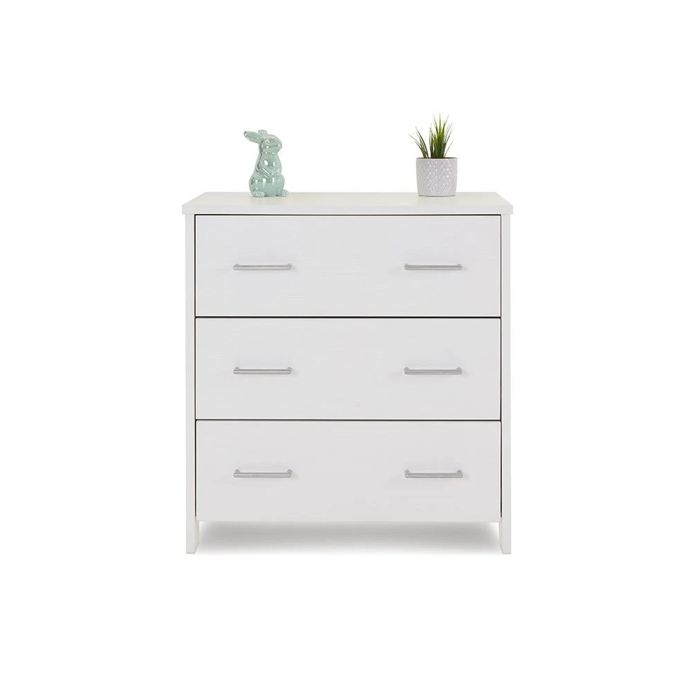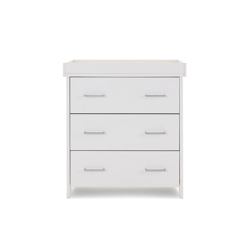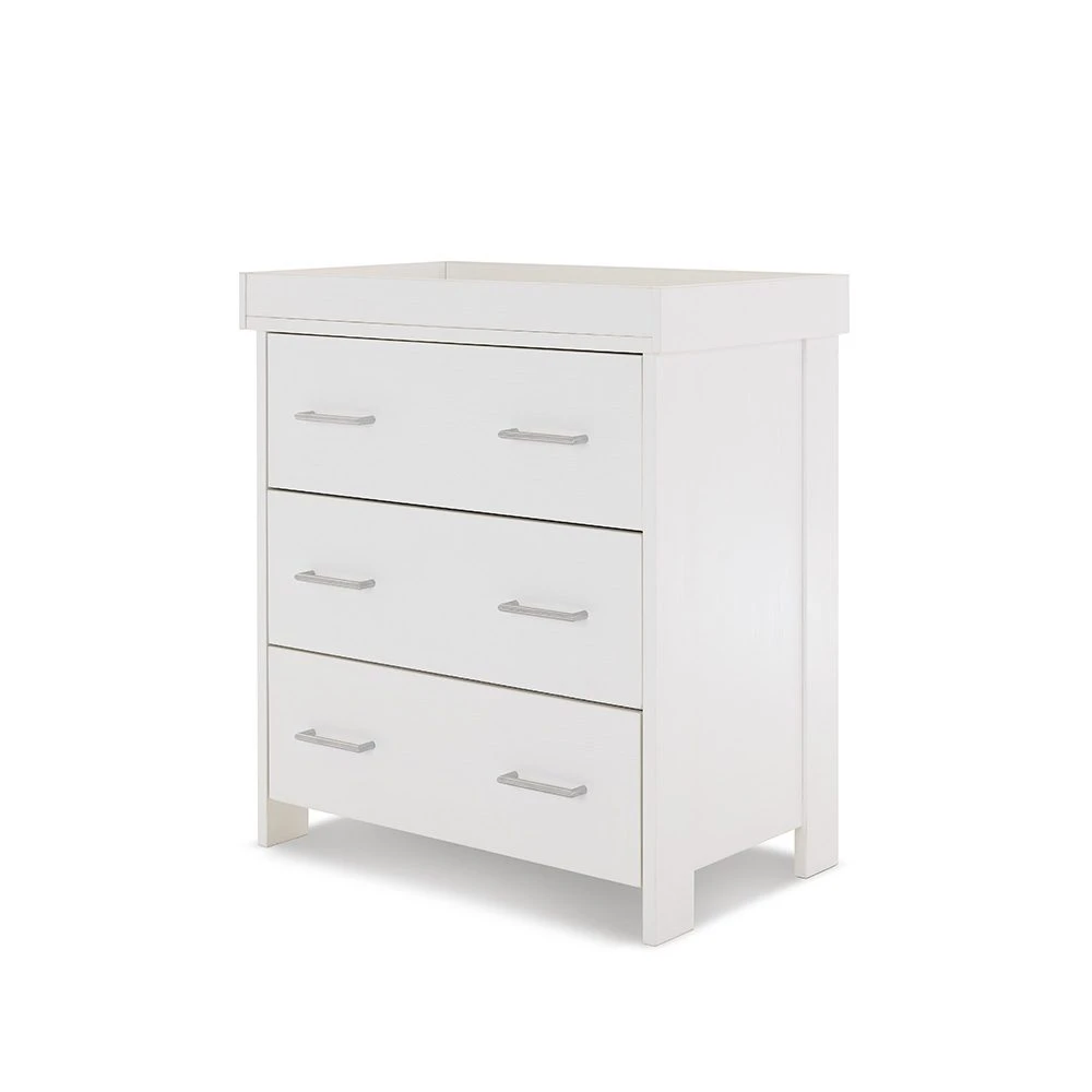 The Nika changing unit is a piece of furniture that can be used for years to come. Three large 32L capacity, full depth drawers offer plenty of space for changing essentials, toys and your little one’s precious possessions. All three drawers feature two brushed metal handles and glide on smooth runners allowing you to easily open them with either hand.
