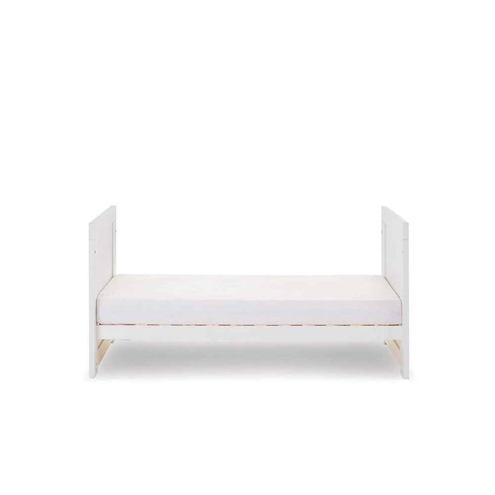 When your little one is standing confidently, the Nika can be easily transformed into a stylish toddler bed that still offers the familiarity they are used to and helps them to transition in an often-daunting time. Once transformed the toddler bed can be used until they are approximately four years old. Requires an Obaby 140 x 70cm mattress.