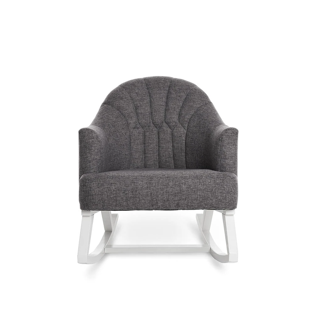 The solid wooden frame provides long-lasting support while the deep foam seat and back cushioning envelopes you, providing maximum comfort. The Obaby round-back rocking chair is designed to fit into any nursery setting due to its soft and durable weaved upholstery in a neutral shade.