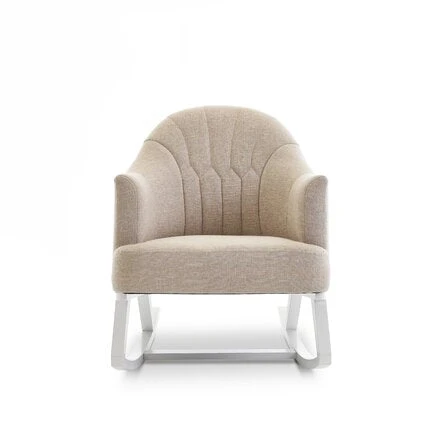 The solid wooden frame provides long-lasting support while the deep foam seat and back cushioning envelopes you, providing maximum comfort. The Obaby round-back rocking chair is designed to fit into any nursery setting due to its soft and durable weaved upholstery in a neutral shade.