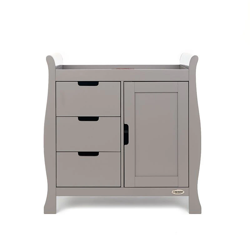 The Stamford closed changing unit’s combination of three spacious 13L capacity drawers and full height cupboard with adjustable shelf and soft close door provide plenty of storage options, whilst the cleverly recessed section on the top of the changing unit perfectly accommodates a changing mat up to 76 x 46cm.