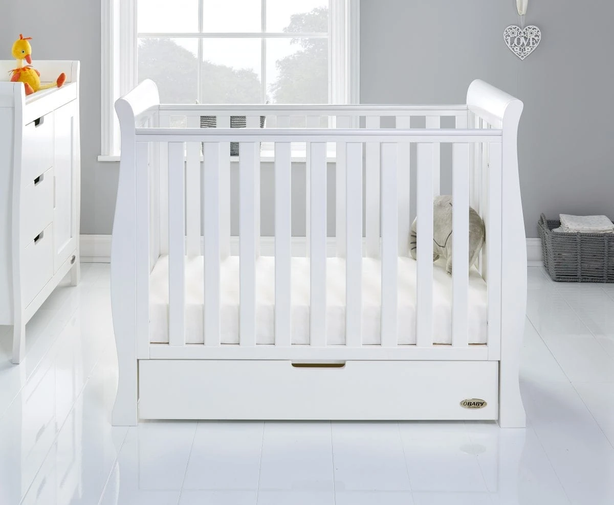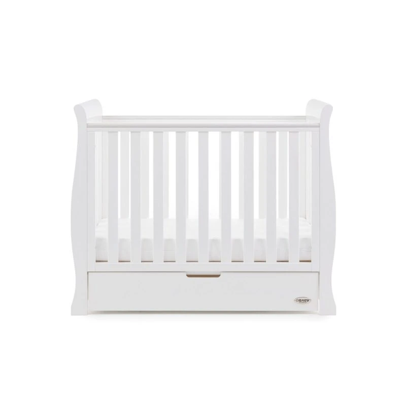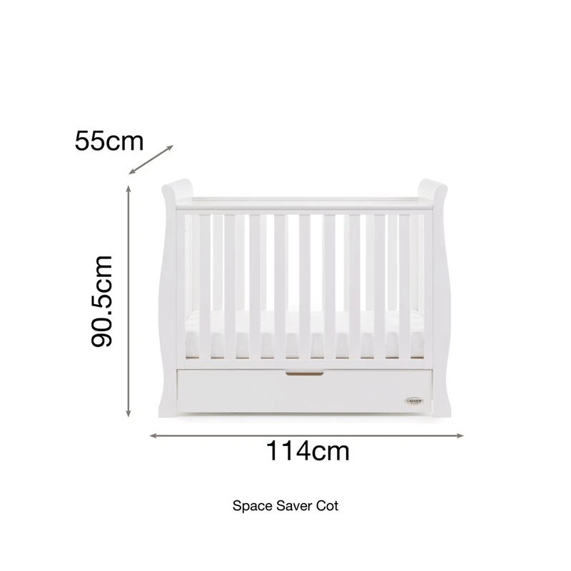 The Obaby Stamford furniture range offers families the perfect combination of style, quality and practicality. The Stamford Space Saver 2 piece room set in White consists of the beautiful Stamford Space Saver cot bed with under drawer and closed changing unit. All pieces feature the same elegant sleigh design that flows through the rest of the Stamford range.