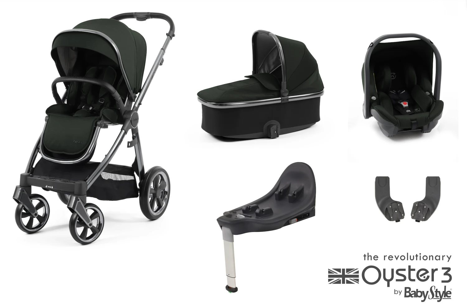 Be the first to review “Oyster 3 Essential 5 Piece Capsule Travel System | Black Olive (Gun Metal Chassis)” Cancel reply