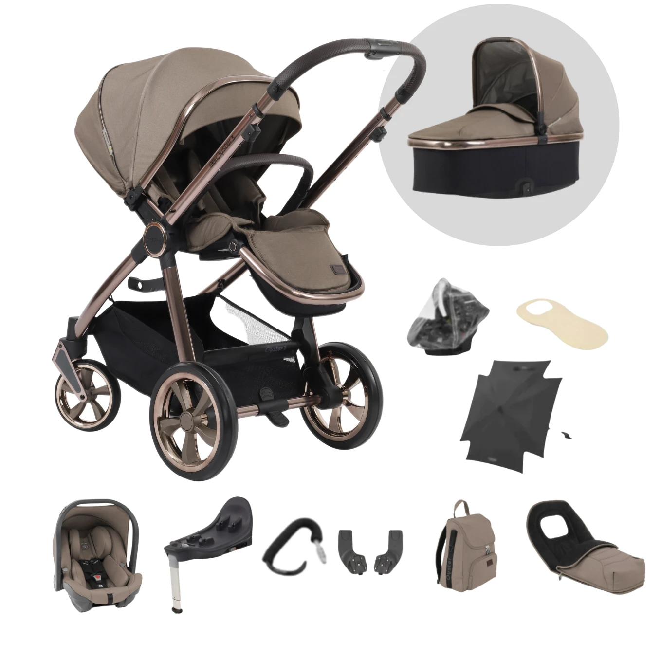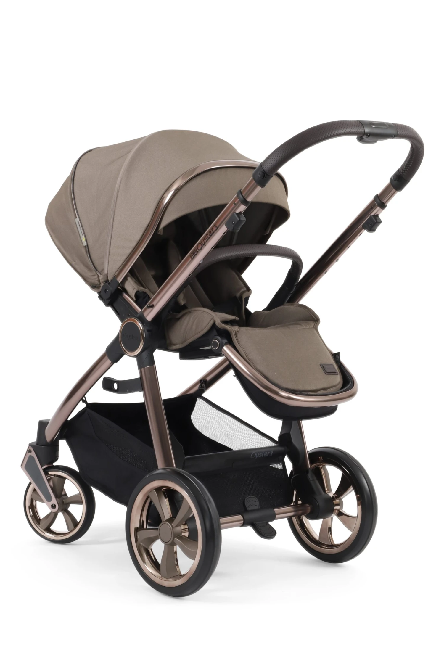 In a world where space saving engineering is key, the New Oyster 3 stroller in Mink is larger than the Oyster 2: it sits higher, has a larger footprint, larger turbine wheels and even takes a 20kg child; But making life easier, the Oyster 3 fold is exceptionally compact for it’s size and it folds with the seat unit attached. There is also a retractable carry handle making it easier to handle, whether storing away or on public transport.