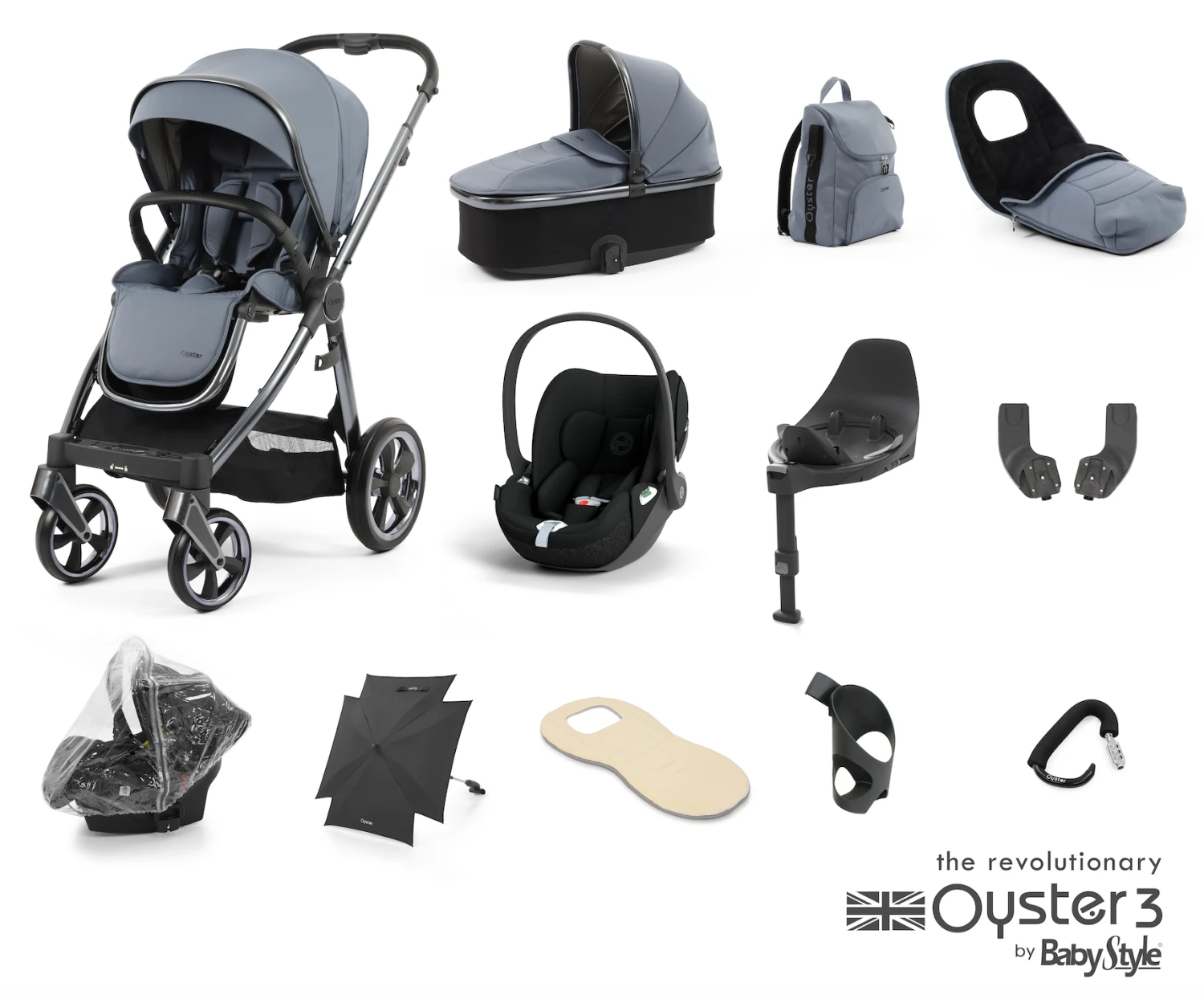 In a world where space saving engineering is key, the New 2022 Oyster 3 stroller in Dream Blue is larger than the Oyster 2: it sits higher, has a larger footprint, larger turbine wheels and even takes a 22kg child; But making life easier, the Oyster 3 fold is exceptionally compact for it’s size and it folds with the seat unit attached. There is also a retractable carry handle making it easier to handle, whether storing away or on public transport.