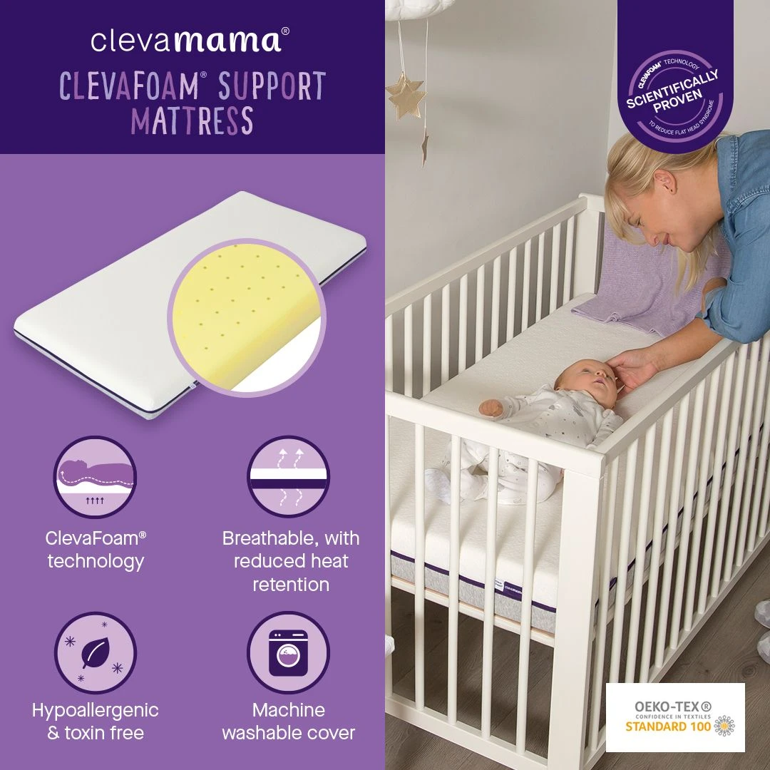 The ClevaFoam Support Baby Mattress is designed to be the ultimate in comfort and support for your baby’s head, neck and body, helping them sleep safely and soundly so everybody has a good night’s sleep!