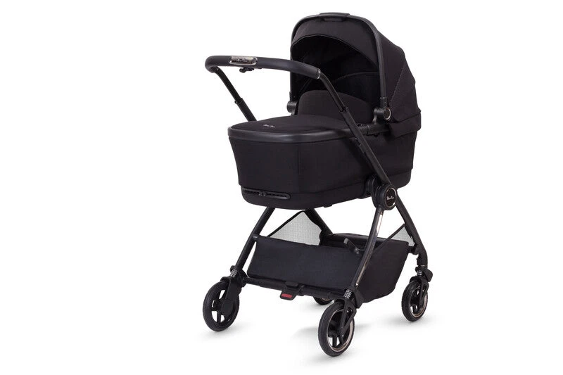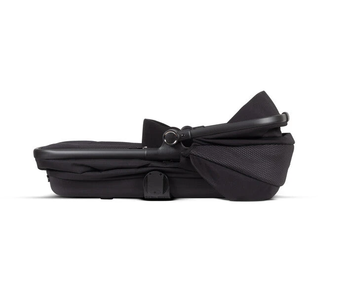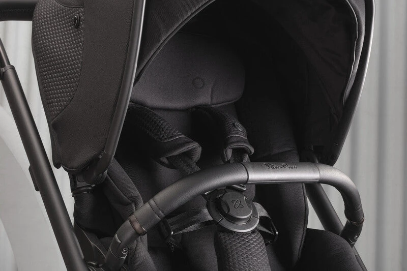 The chassis is a solid black tone, whilst the fabrics are a textured black which gives depth to the classic black pram.