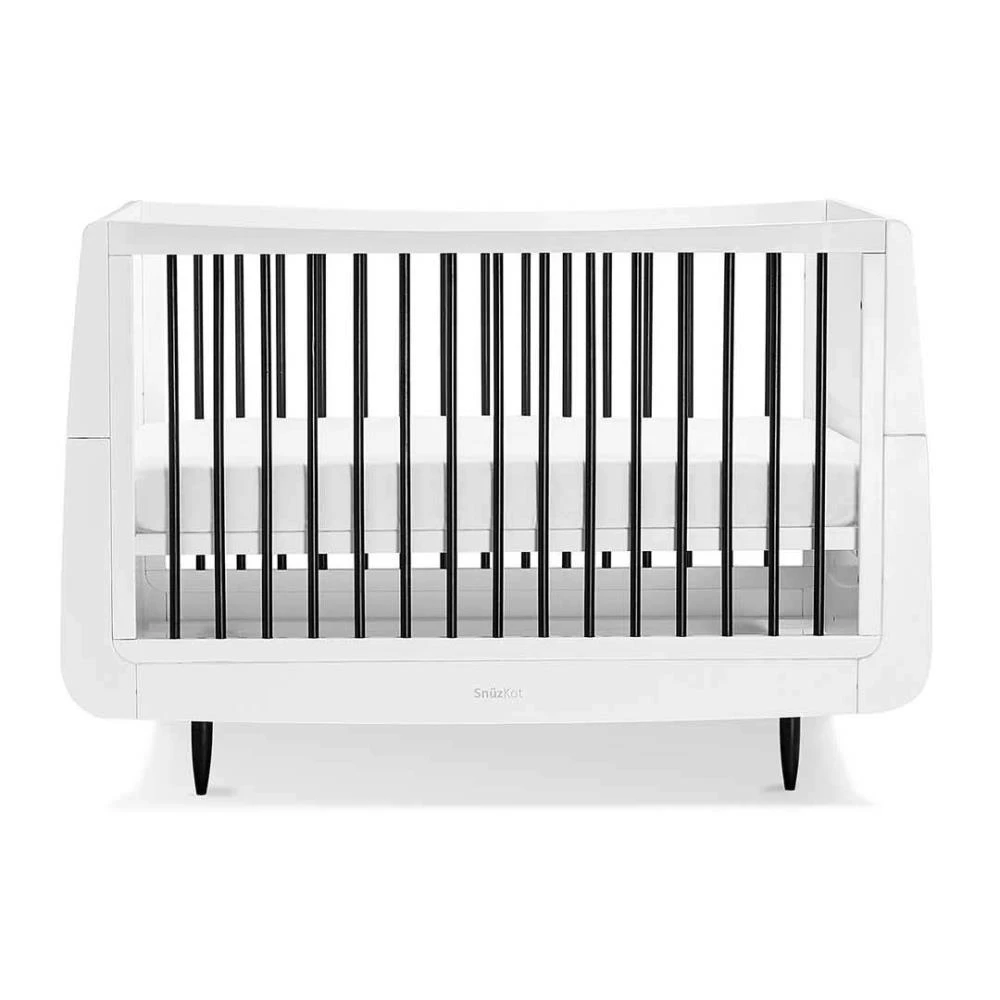 This SnuzKot Skandi Cot Bed in Mono can be used from birth and will grow with your little one! Use from birth to 18 months, you can then convert it into to a toddler bed up to 4 years and with the additional junior bed extension kit it will grow with your child up to the age of 10 years! This Skandi cot bed has been designed to really last through the years, made using natural beech wood without the use of MDF or veneer. The handy mattress base has 3 height positions, making it easy for parents to get their little one in and out without over-stretching. Lift your newborn baby from the highest point and as they grow and learn to sit and stand, the base can be lowered to help prevent them climbing out.