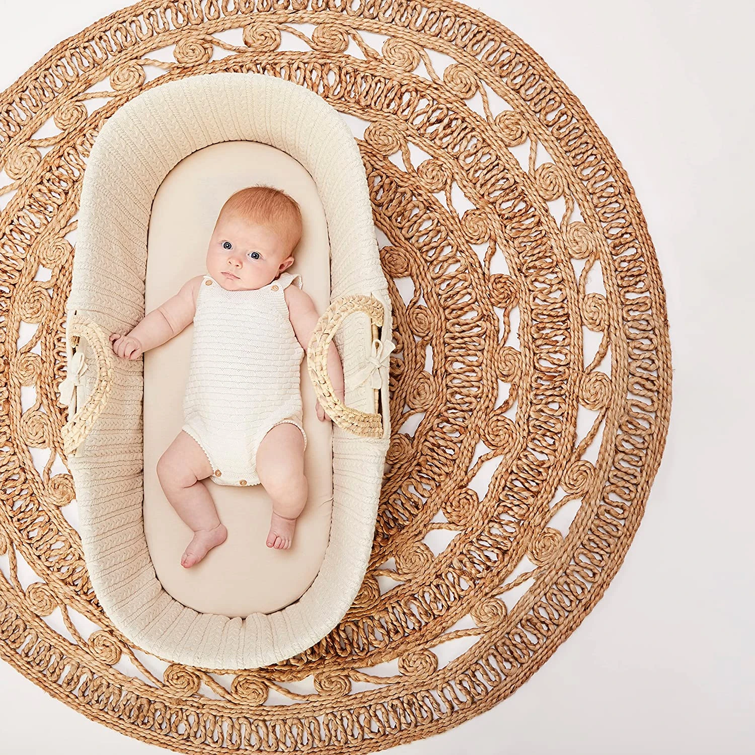 Create the most natural sleeping environment from day one with this stunning knitted Moses basket in Natural Linen, part of Little Green Sheep’s With Love collection. Complete with a luxurious chemical-free Little Green Sheep mattress.