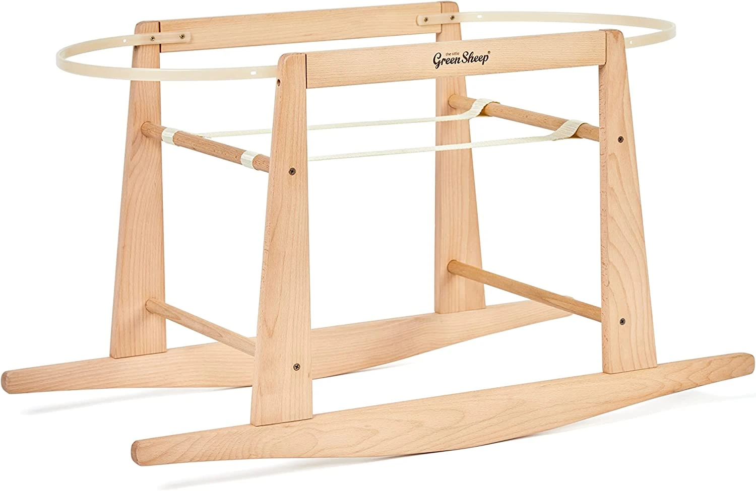 The Little Green Sheep Moses Basket Rocking Stand, in natural beech solid wood, is the perfect addition to any nursery. While your baby is settled in their Moses basket, you can rock them gently to sleep. Featuring wooden retaining bars that keep the Moses basket safe and secure. Fits all Little Green Sheep Organic Cotton Knitted & Quilted Moses Baskets Natural Solid Beech Wood Bronze fixings Self-assembly required.