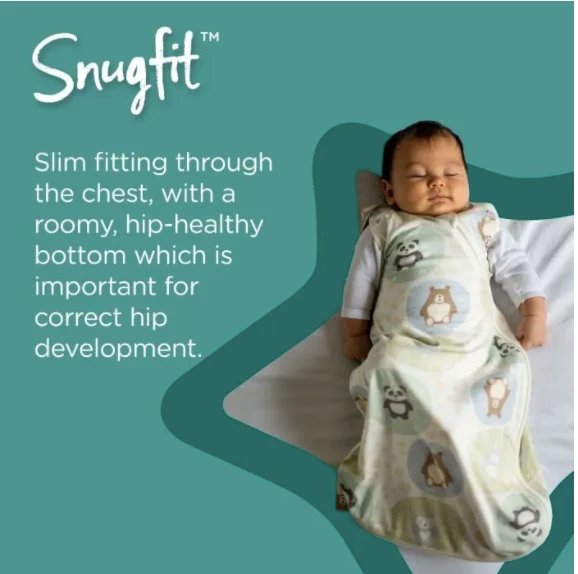 Tommee Tippee Swaddlebags have been designed to be snug up top and wriggly down below – slim fitting through the chest to enable full freedom of movement without restriction or excess bulk with a roomy, hip-healthy bottom to allow your baby to adopt a natural “frog-legged” sleeping position, which is important for correct hip development.