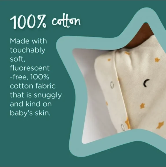 Made from soft 100% cotton-rich, fluorescent-free fabric, these Swaddlebags are snuggly and kind on baby’s skin – perfect for a comfortable night’s sleep.